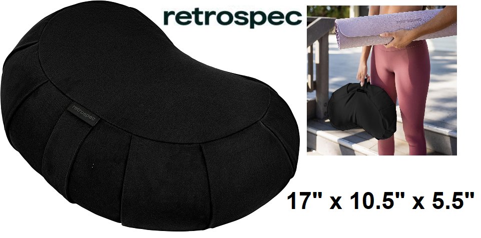 Retrospec half moon Sedona Zafu Meditation Cushion Filled with Buckwheat Hulls for meditation - 17" x 10.5" x 5.5" - black