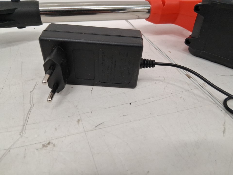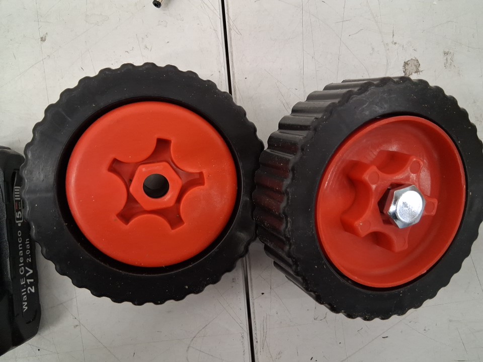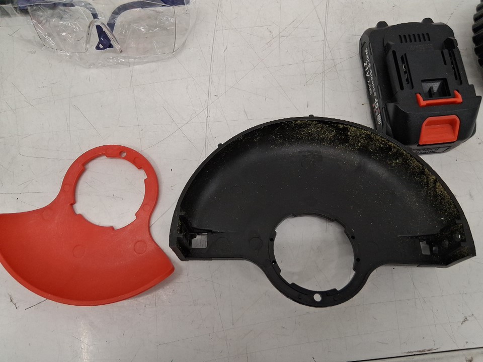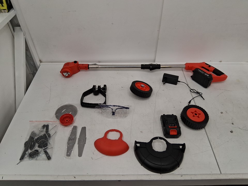 Please note that the item was tested for basic power. The batteries still have a charge in them. You will need an adapter in order to charge the batteries again (See Photos) There is a bolt missing on one of the wheels. There is grass/debris on the item consistent with previous use