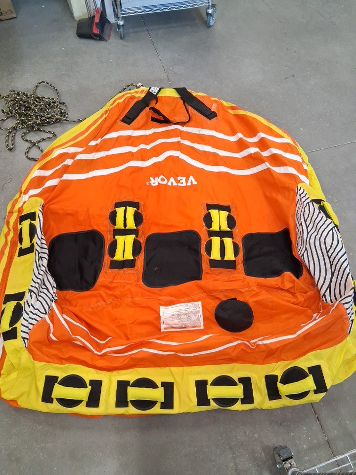 There is some dirt/plant debris on the surface, and the seats and rope are also slightly damp, indicating some previous use - see photos. Outside of this, appears in good condition with no noticeable damage.