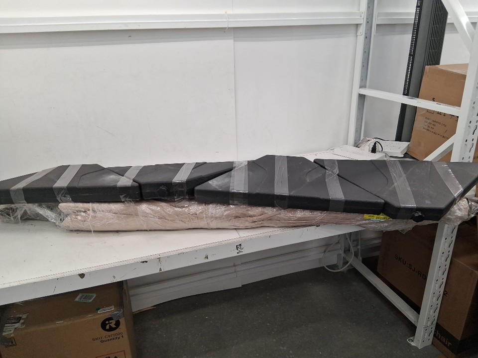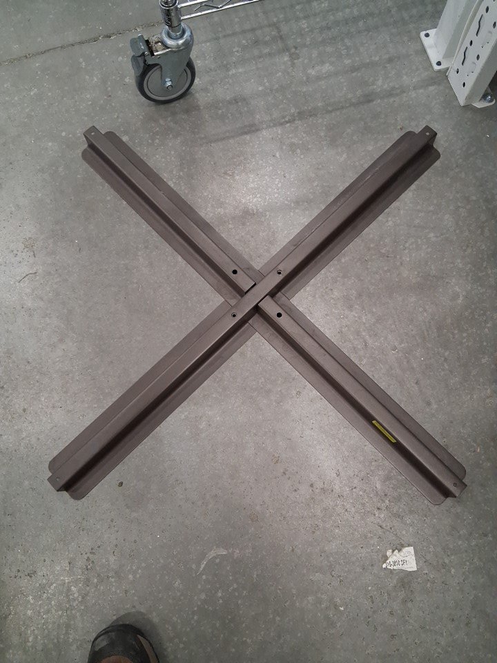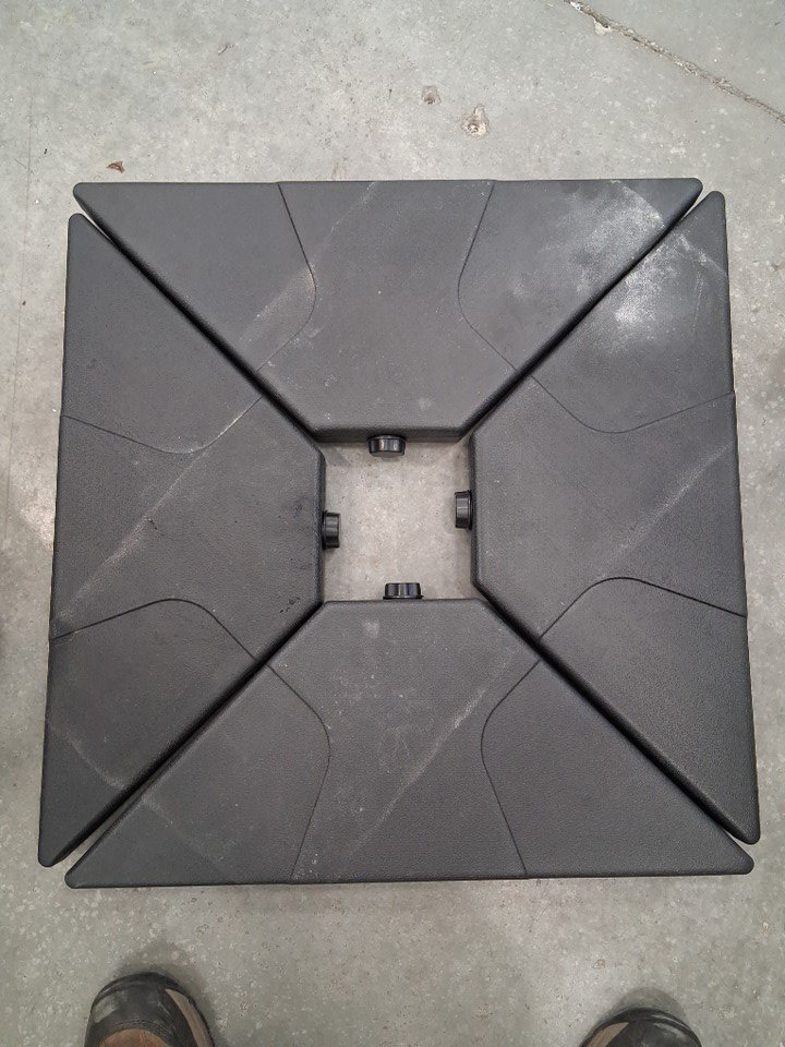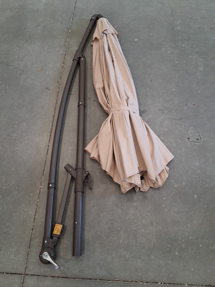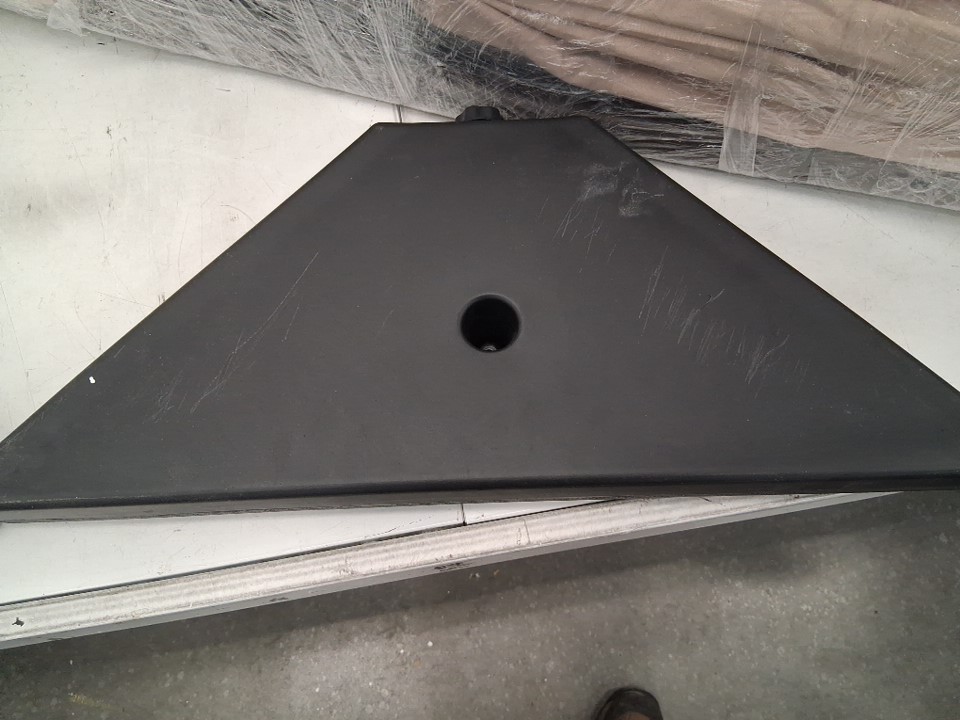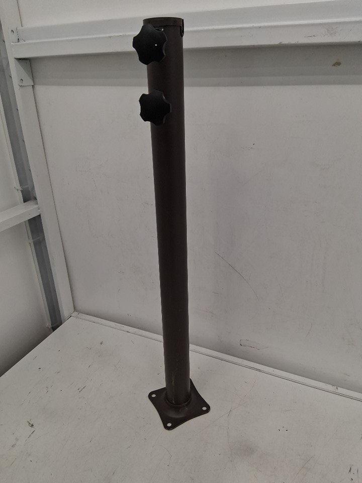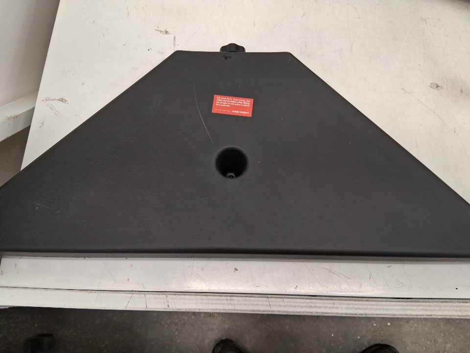 There are some scuffs on the base pole as well as the metal and plastic of the base itself, as well as some water still inside of the plastic parts, indicating some previous use - see photos. Aside from this, all parts appear present and in good working condition.