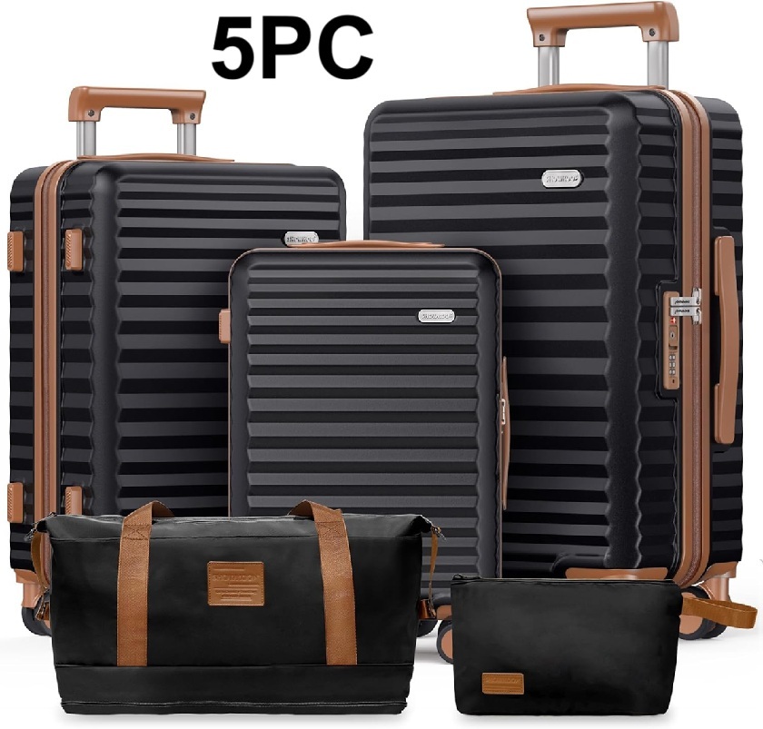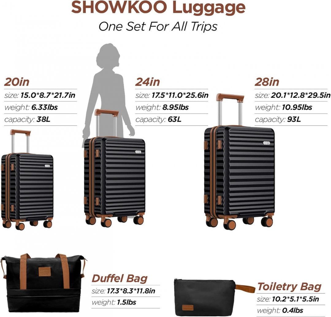 5pc SHOWKOo Hardside Expandable Suitcase luggage set with Double Spinner Wheels and tsa locks - 20"/24"/28" - black/brown (model: SK-3P5)