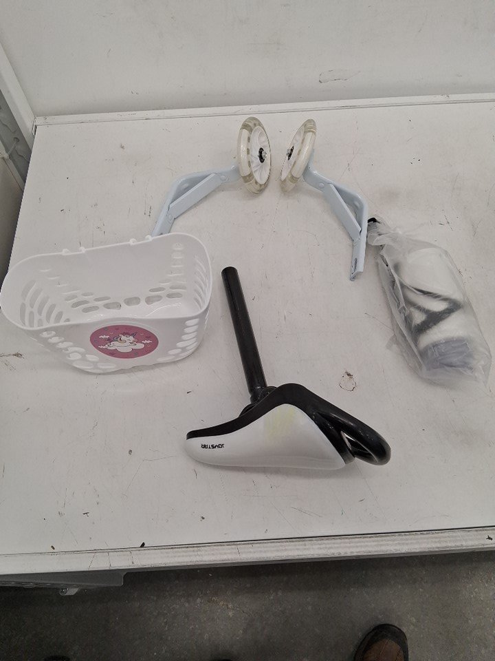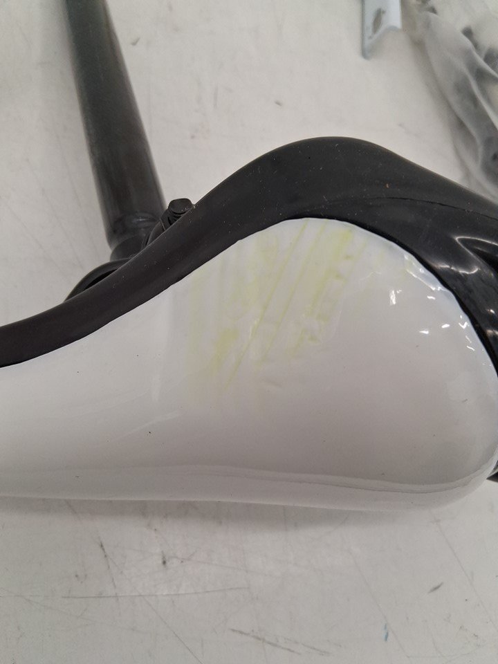 There are some light scuffs on the bike frame and a stain on the seat due to shipping - see photos. Otherwise all parts appear present and in unused condition.