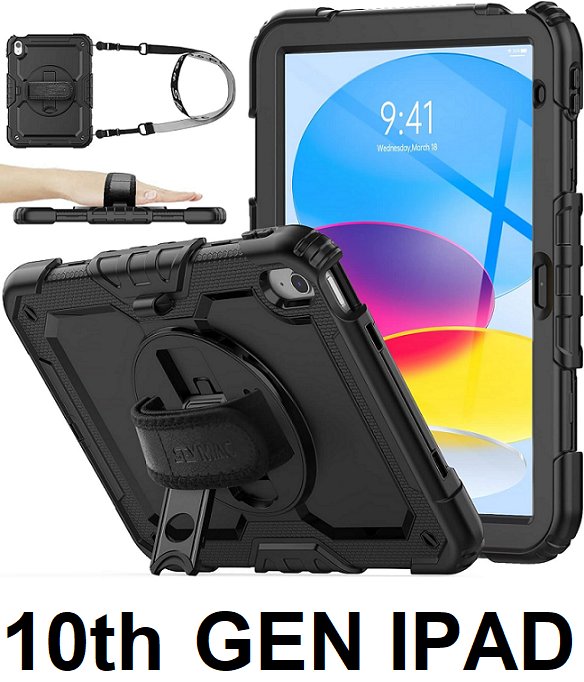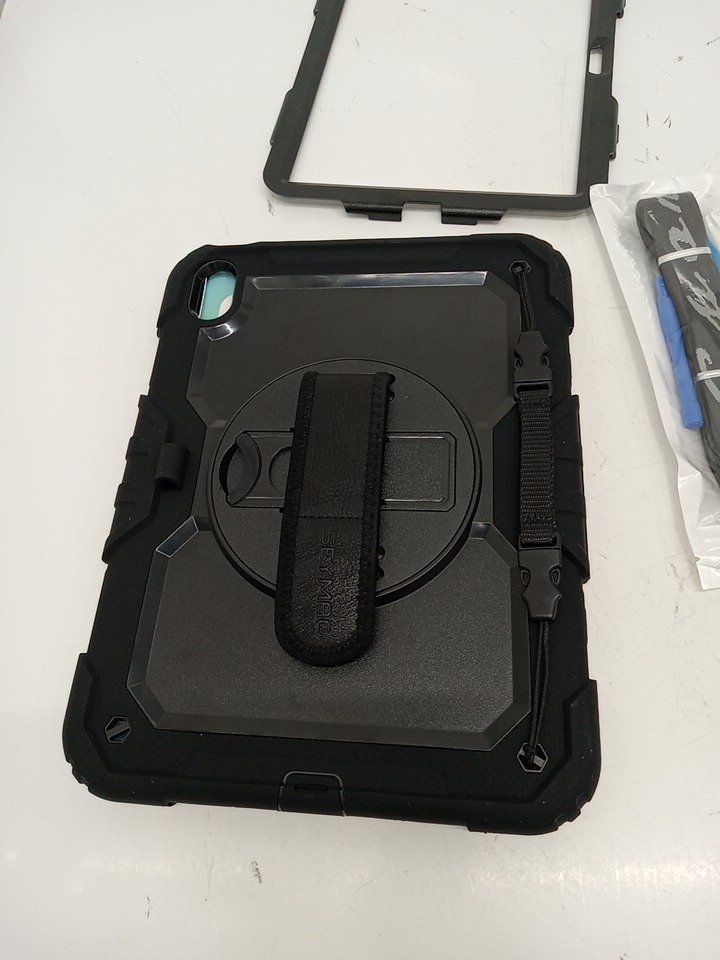seymac hard shell drop protection stock Case with SCREEN PROTECTOR and rotating hand strap - 10TH generation 2022 ipad - black