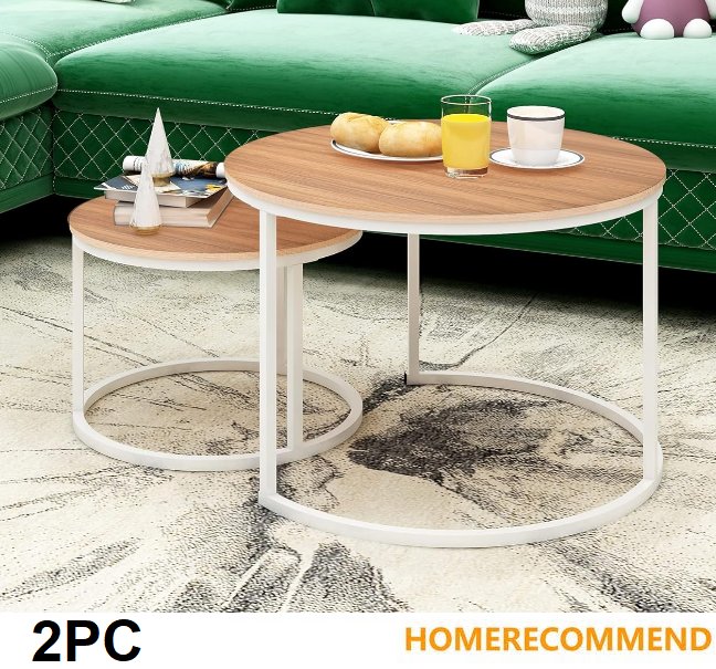 2pc HOMERECOMMEND Round Nesting Coffee Table Accent - 27" x 19" AND 19" x 14" - WHITE AND TEAK - (MODEL: 807-wh-oakdk)