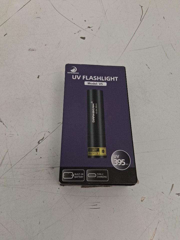DARKBEAM Flashlight UV Light with USB- C charging cable - 395nm - 200 lumens - 3.5" - black (model: ‎V5-DB)