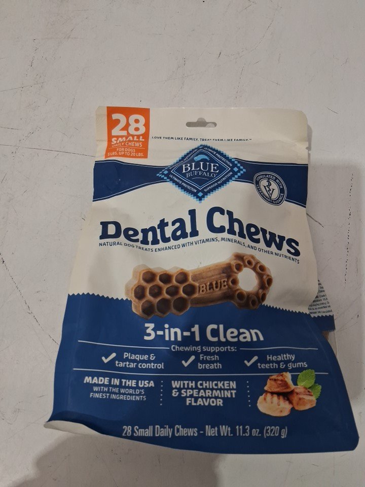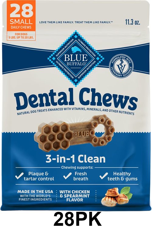 28PK BLUE BUFFALO 3-IN-1 DAILY ORAL CARE DOG TREATS CHEWS - SMALL, 5-20LBS