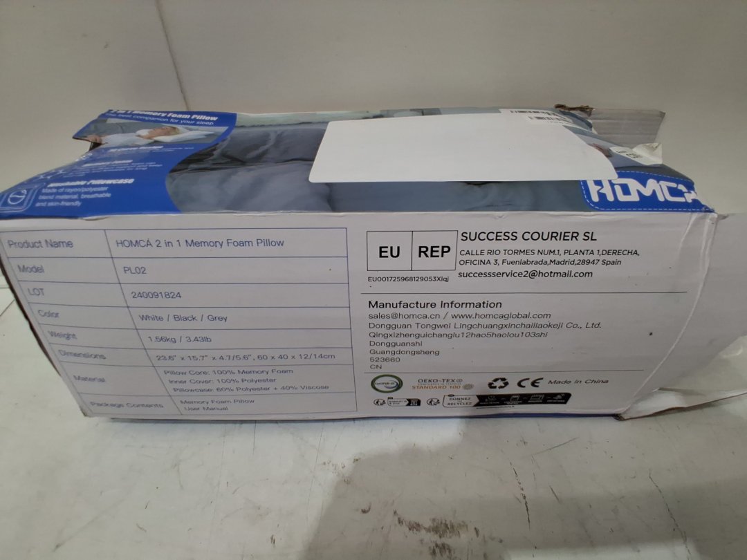 HOMCA 2-IN-1 Ergonomic Memory Foam Pillow for Side Back Stomach Sleepers - 15.7"x 23.6" - grey - (model: PL02)