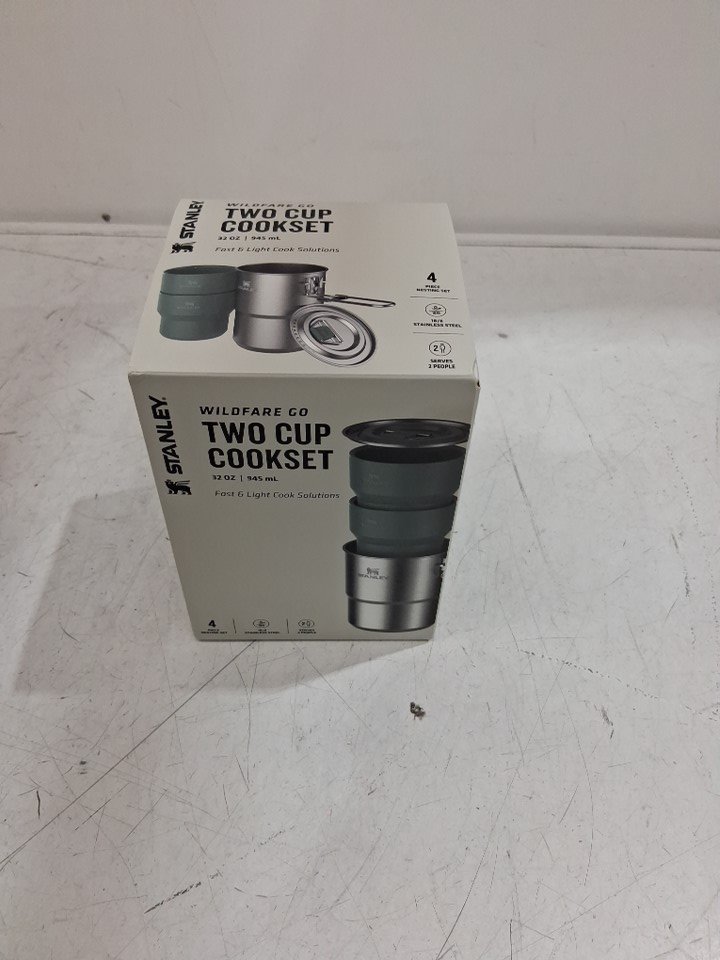 Stanley Wildfare Go Two Cup Stainless Steel Cookset - Pot and Lid with Fold & Lock Handle, and 2 cups - silver/green (model:10-12148-001)