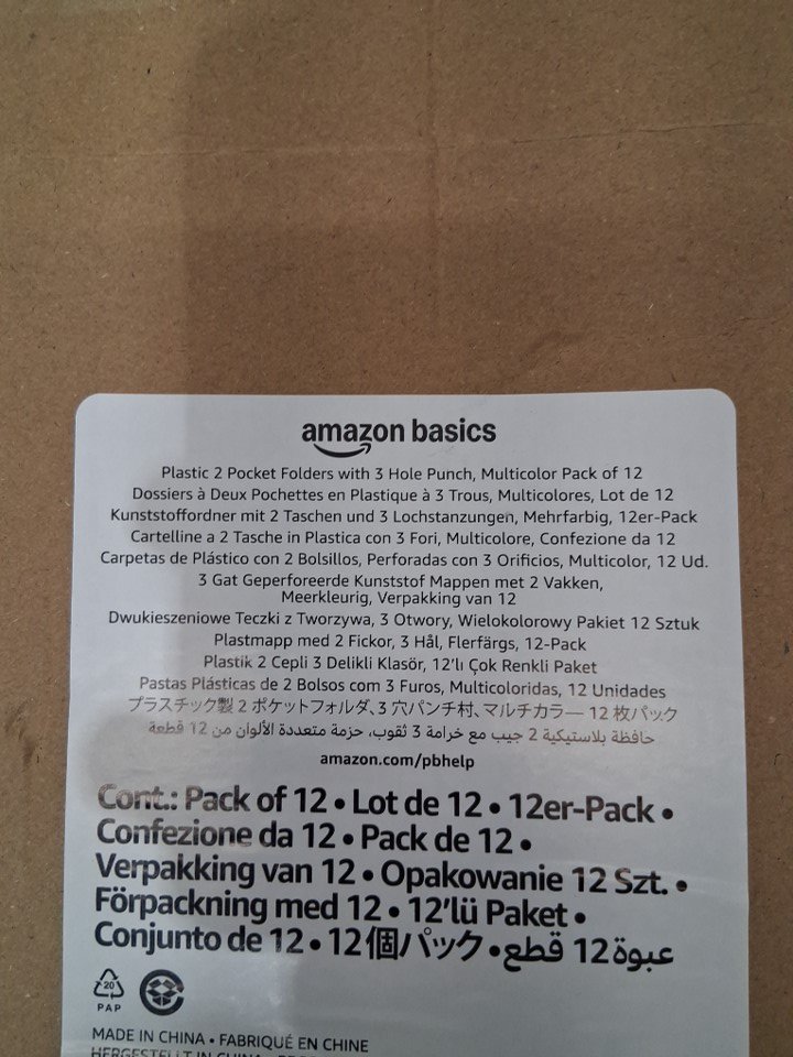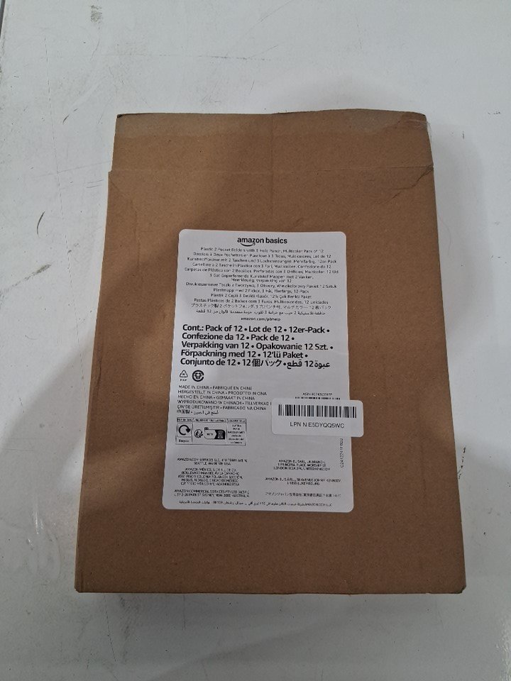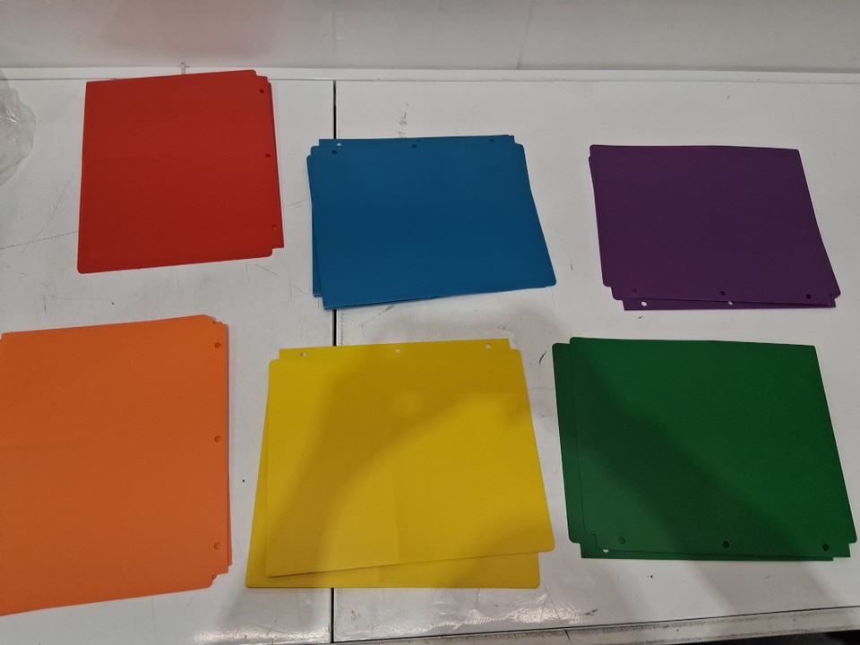 12pk amazonbasics plastic 3 hole punch folders with 2 pockets - letter size - multicolor
