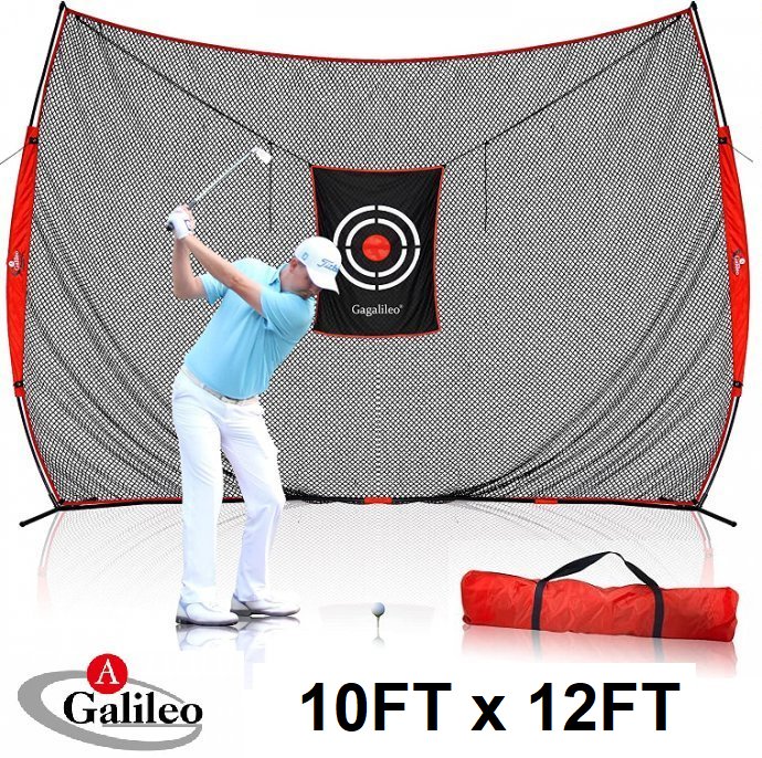 GALILEO GOLF DRIVING PRACTICE NET WITH CARRYING BAG - 10FT X 12FT - RED/BLACK