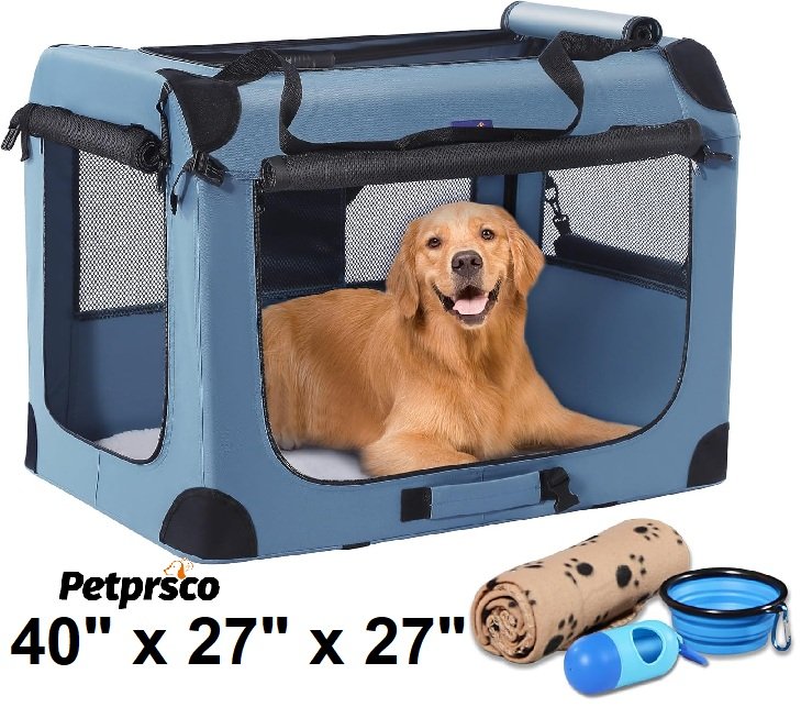 Petprsco Portable and Collapsible Dog Travel Crate for cats and large dogs - 40" x 27" x 27" - blue