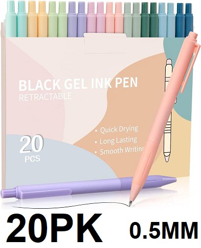 20PK TANMIT Retractable Gel Pens - 0.5MM - BLACK INK
