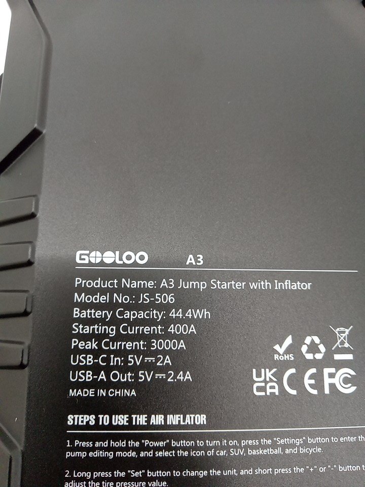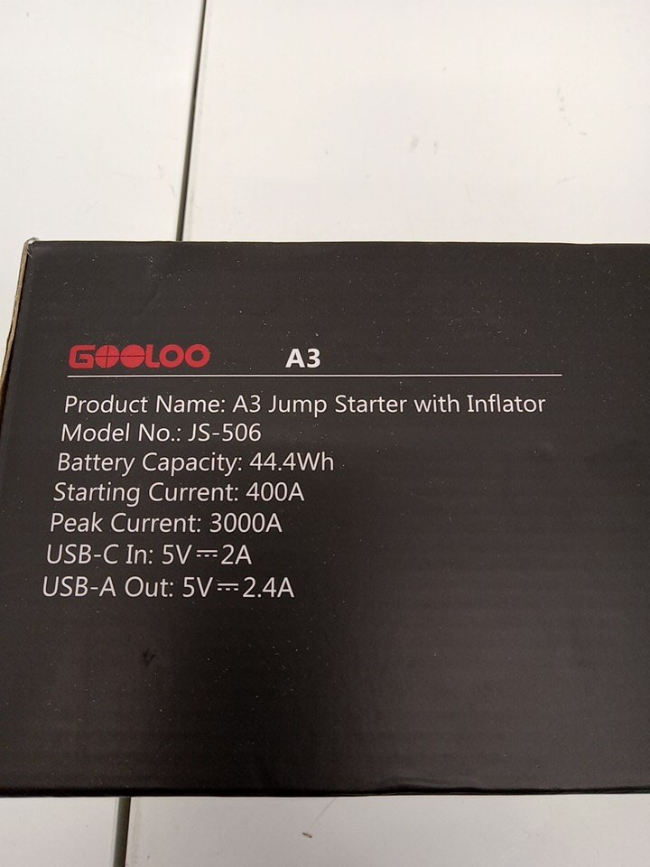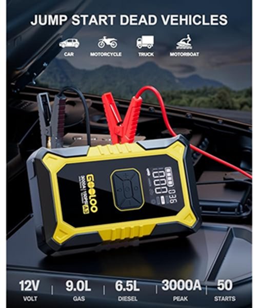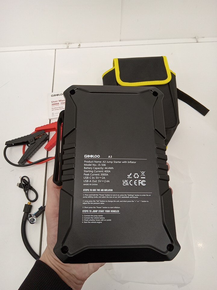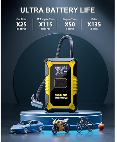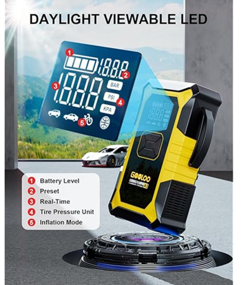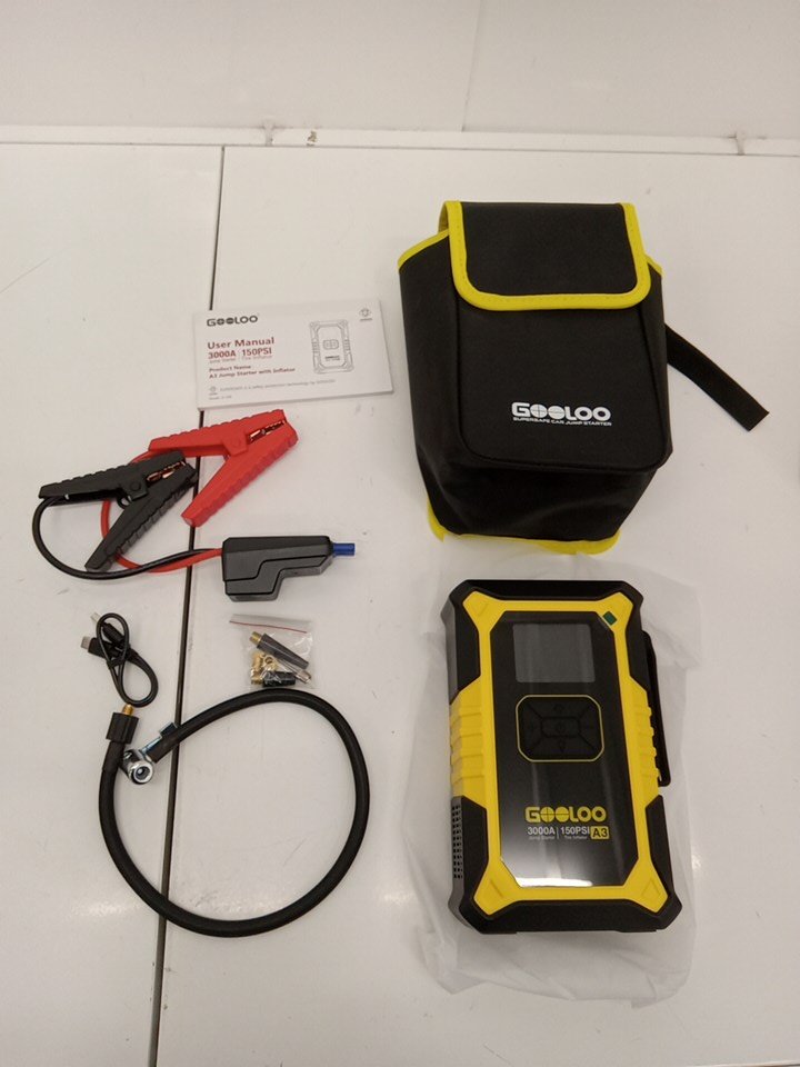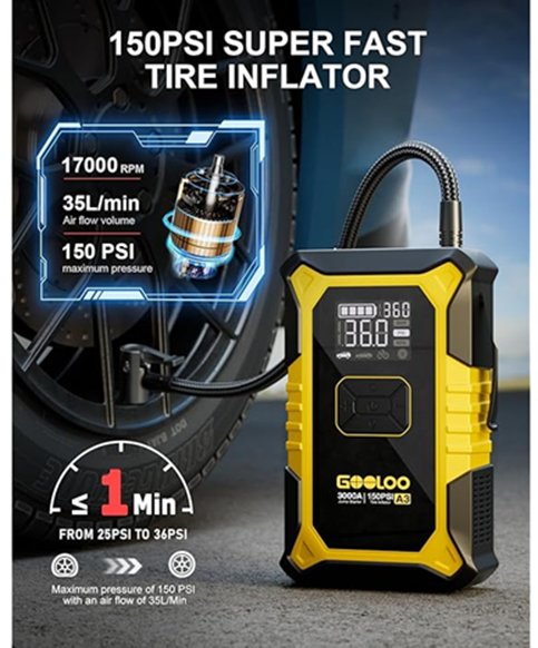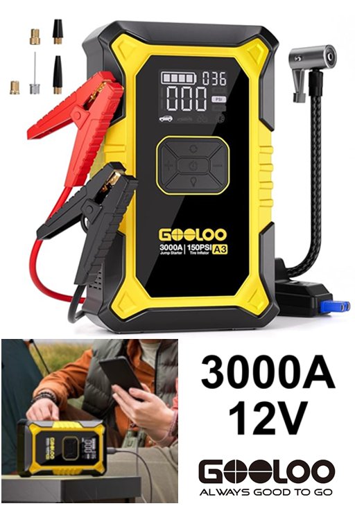 GOOLOO A3 Portable Jump Starter With 150PSI Auto-Shutoff Tire Inflator - 3000A - Black/Yellow - (Model: JS-506)