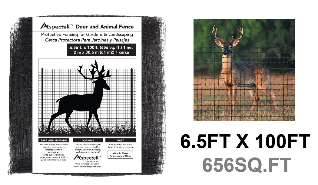 ASPECTEK Deer and Animal Fence for Gardens and Crops - 6.5FT x 100FT - 656SQFT - BLACK