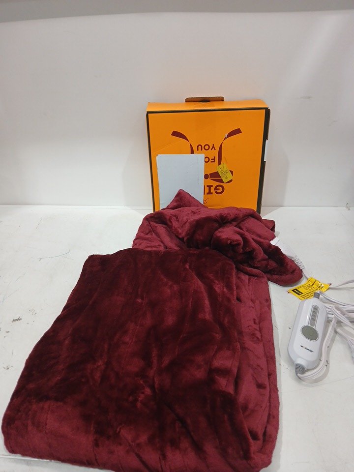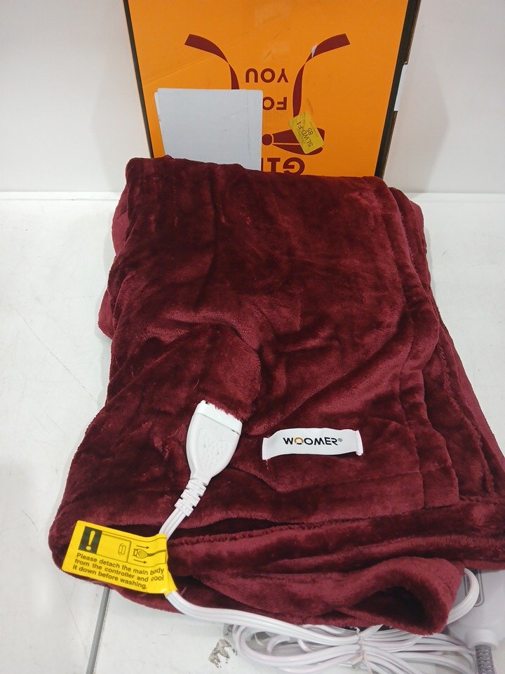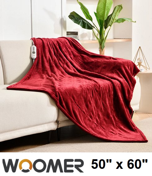 WOOMER ELECTRIC HEATED THROW BLANKET WITH 4 HEAT LEVELS - 50"x60" - burgundy red (MODEL: SQB-BB)
