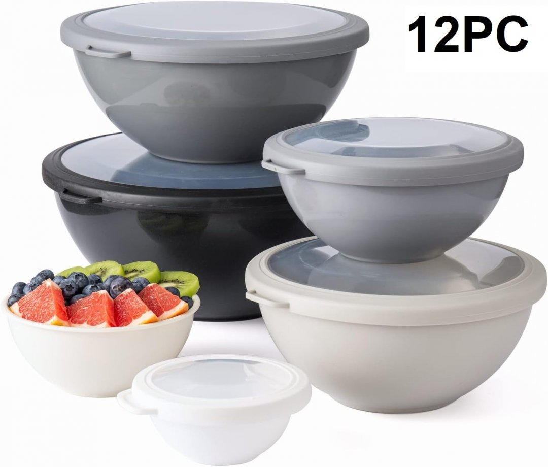 12PC Cook with Color Mixing Bowls with TPR Lids - 6 Prep Bowls and 6 Lids - MULTICOLOR (MODEL: YHMB1202)