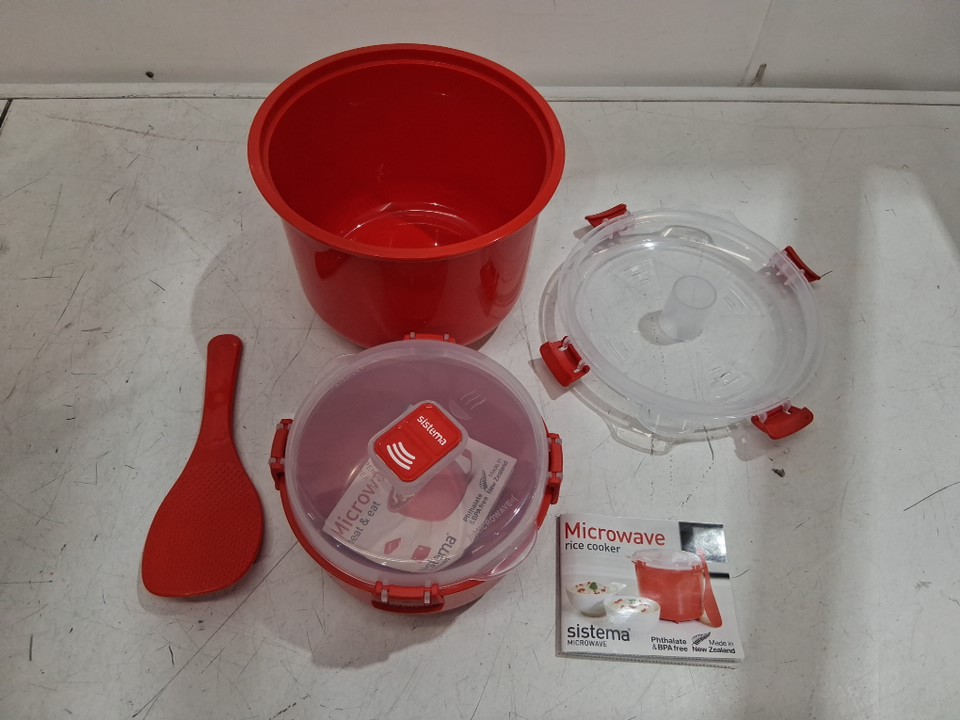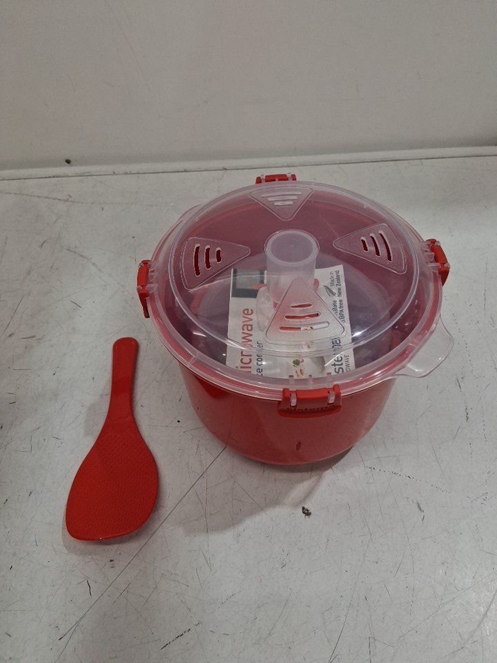 5PC SISTEMA MICROWAVE RICE COOKER (2.6L) AND ROUND MICROWAVE FOOD CONTAINERS (915ML) - RED - (82001)