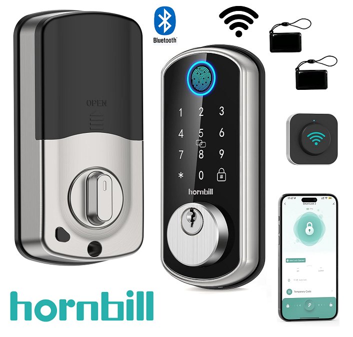 Hornbill Fingerprint Keyless Entry Door Lock with Keypad & bluetooth adapter - Digital Smart Lock - SILVER (MODEL:Y4-SwF-H)