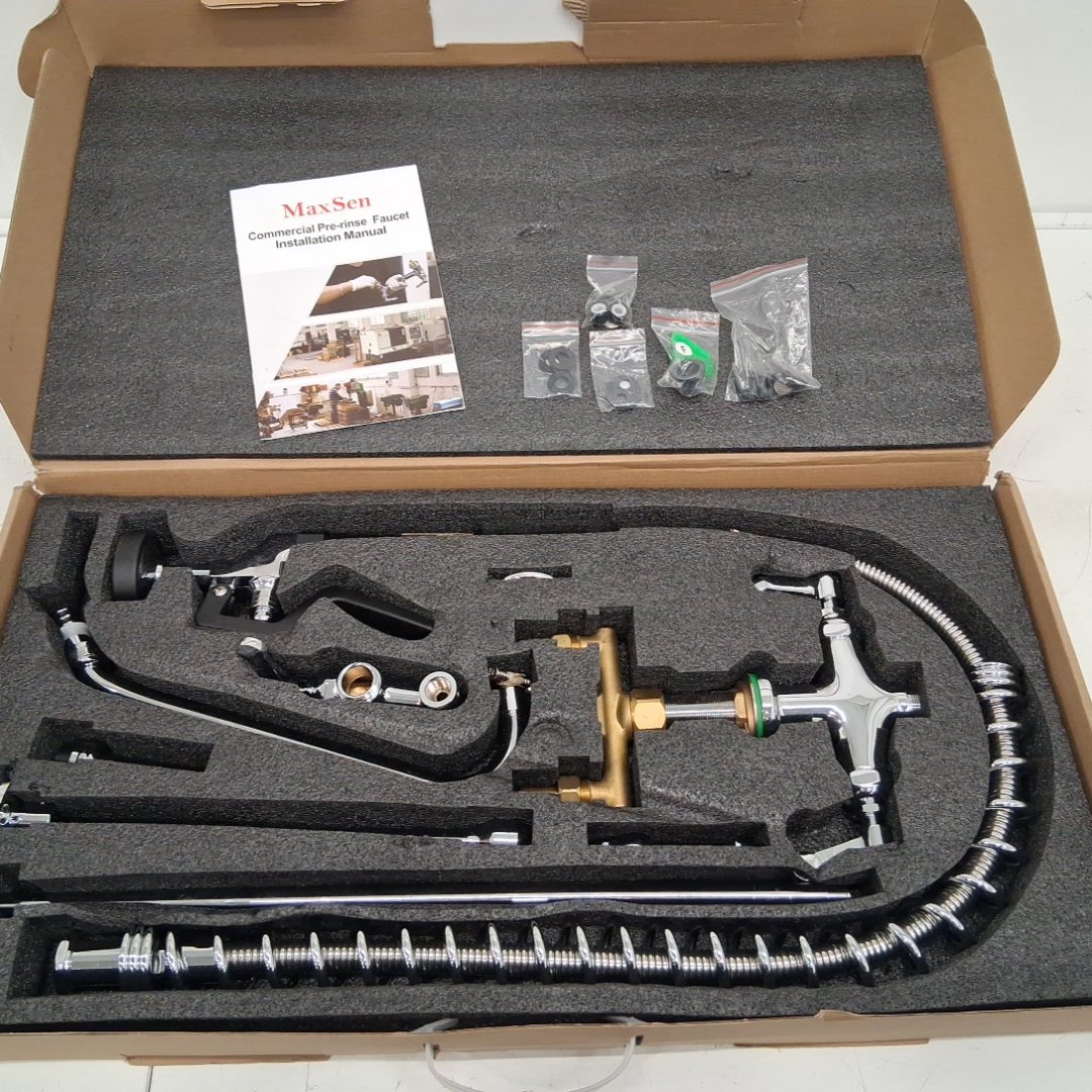 MS Deck Mount Single Hole Double Handle Spray Valve Commercial Dishwasher Pre Rinse Faucet - 1.42gpm - stainless steel (model: ms-5801bl)