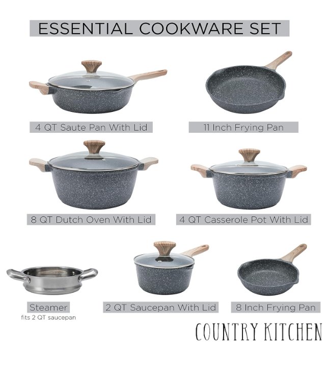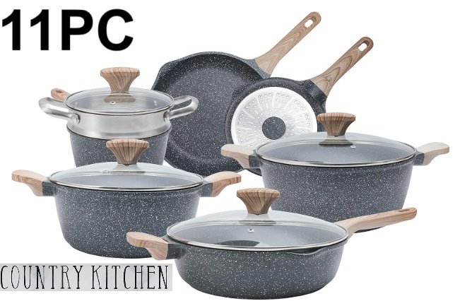 11pc country kitchen Non-Stick Cast Aluminum cookware set - grey (model: ycaspf7)