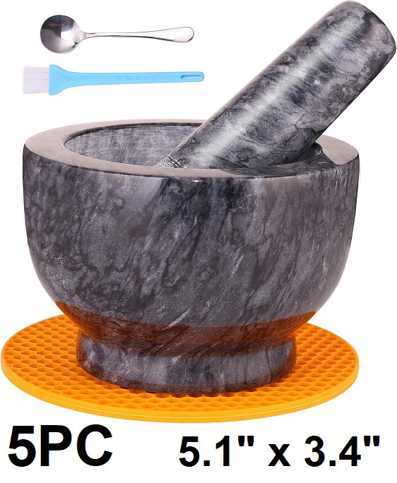 5PC Mortar and pestle set - 5.1" x 3.5" - Dark Gray