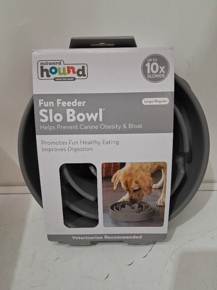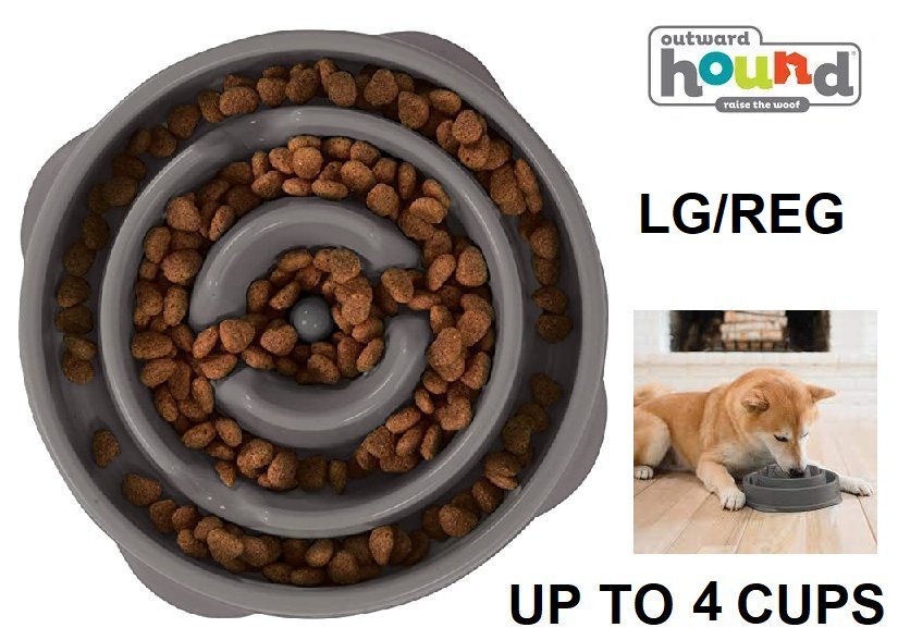 OUTWARD HOUND FUN FEEDER SLO BOWL Slow FEEDER DOG BOWL EAT UP TO 10X SLOWER - Large/Regular (UP TO 4 CUPS) - GREY
