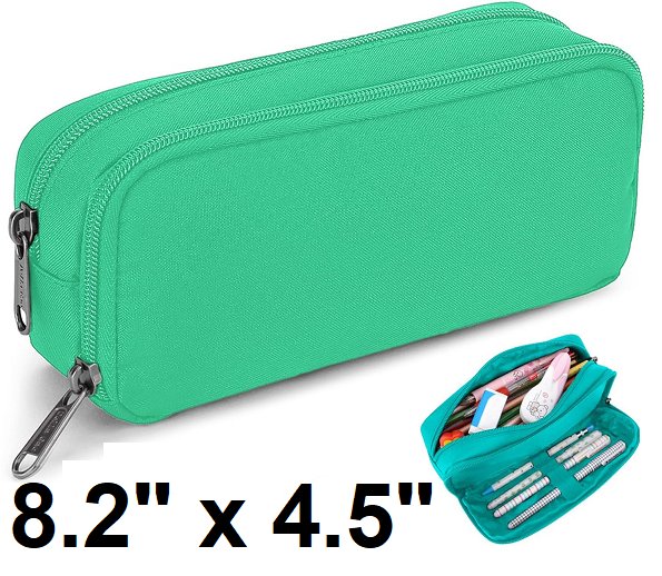 FZFR pencil case large capacity with zipper compartments - 8.2" x 4.5" - Pale green