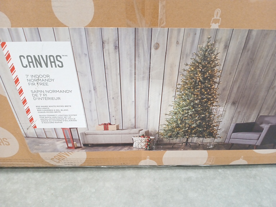 CANVAS PRE-LIT NORMANDY CHRISTMAS TREE WITH STAND - 800 MICRO BRITE LED LIGHTS - 7FT (MODEL: 151-7106-8)