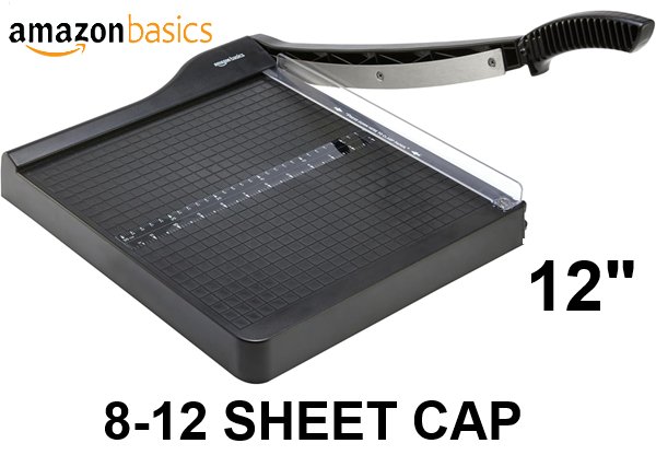 Amazon Basics Paper Trimmer Guillotine With 8-12 Sheet Capacity - 12" Blade - Black/Dark Grey