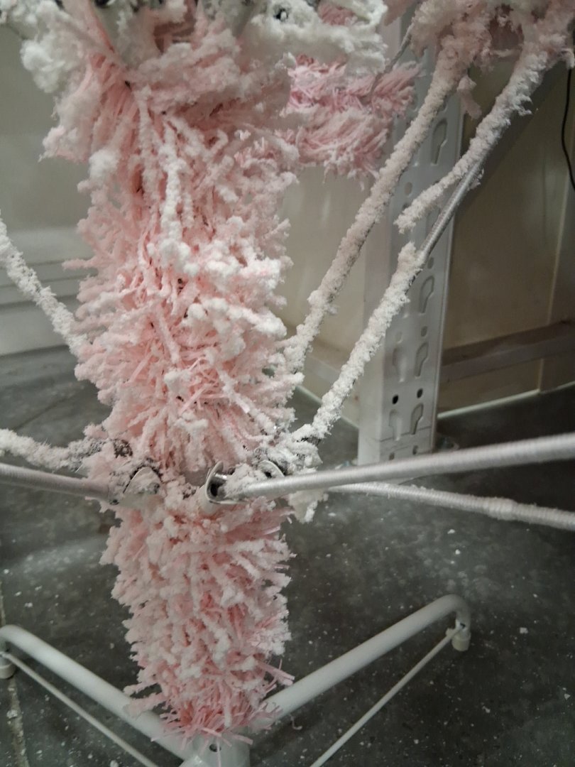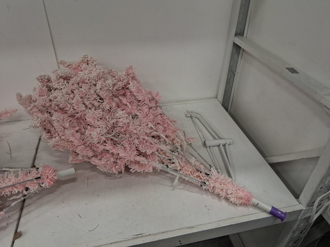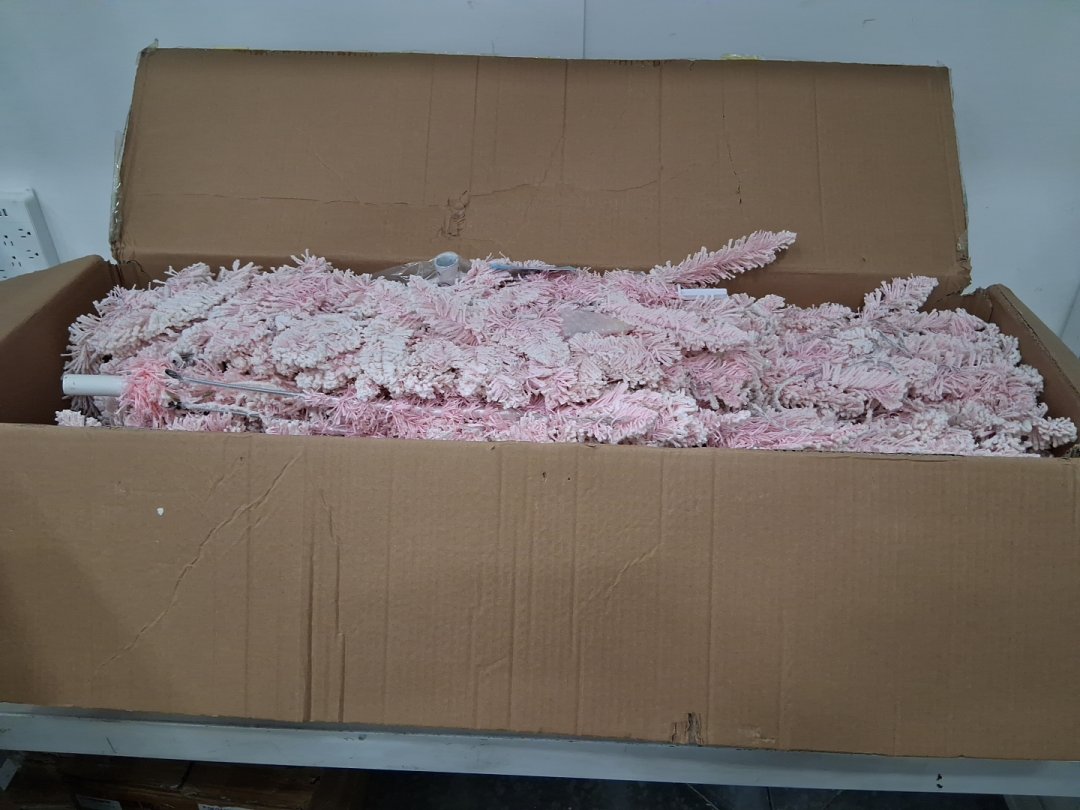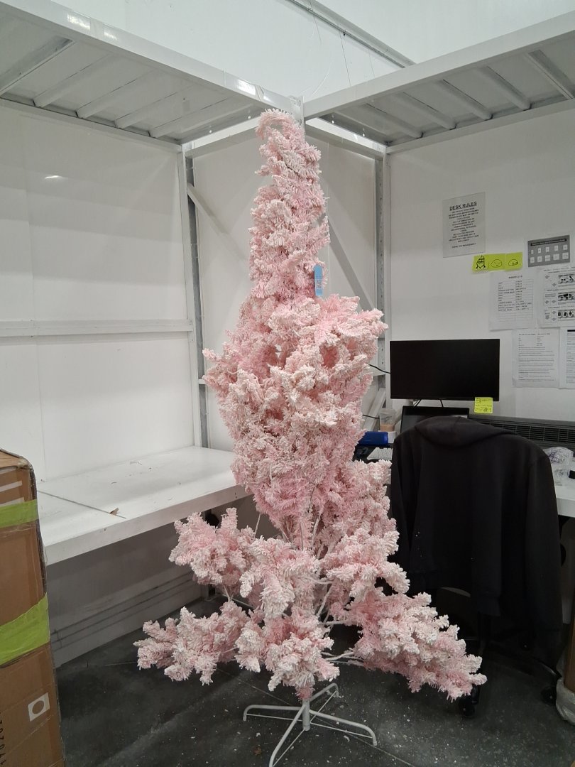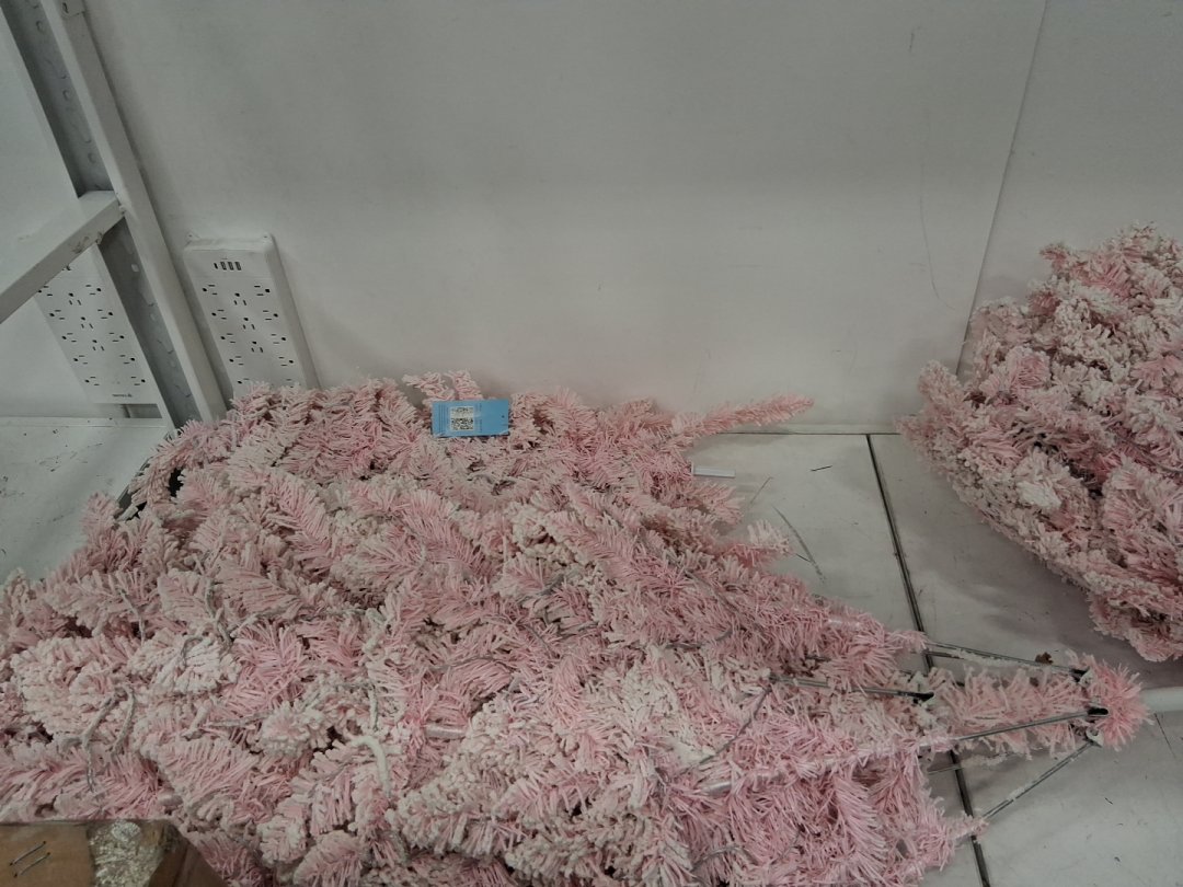 Costway 7.5FT Pre-Lit Snow Flocked Pink Christmas Tree 1100 Tips and 450 Warm White LED Lights - 8 Flash Modes - PINK (MODEL: CM23974)