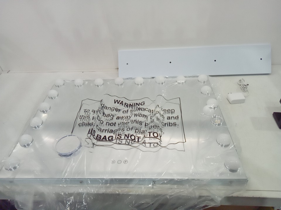 one of the small lights is damaged and broken off. the light on the mirror also doesn't work. please see photos.