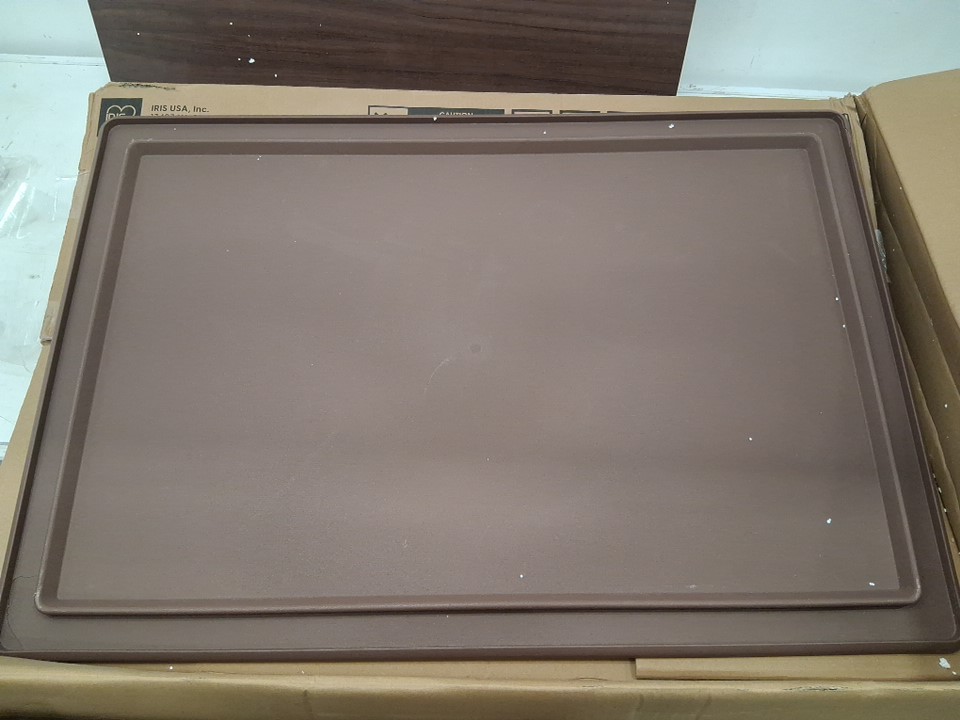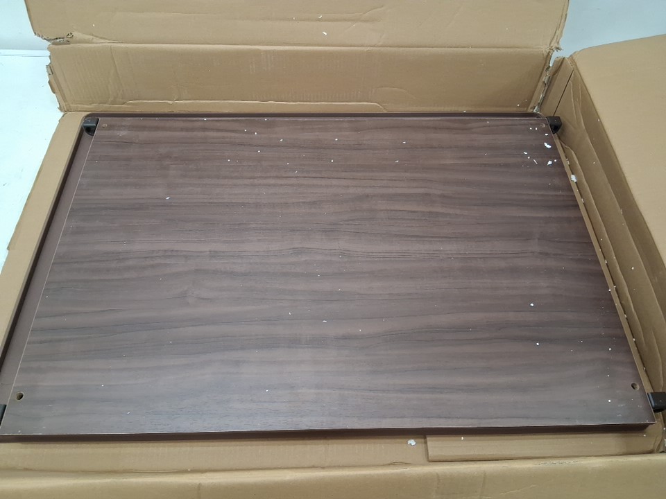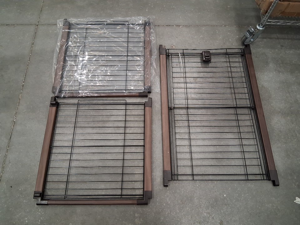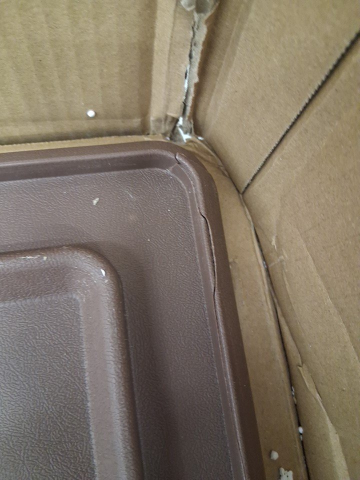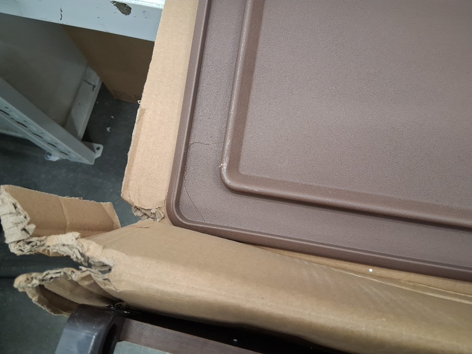 Due to shipping damage, there are some scuffs on one of the plastic connectors on the back wall, and small cracks in two corners of the plastic floor - see photos. Outside of this damage, appears unused and in good condition.