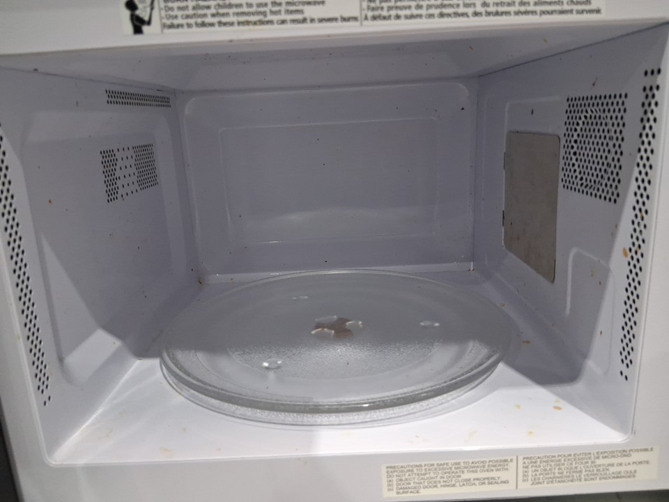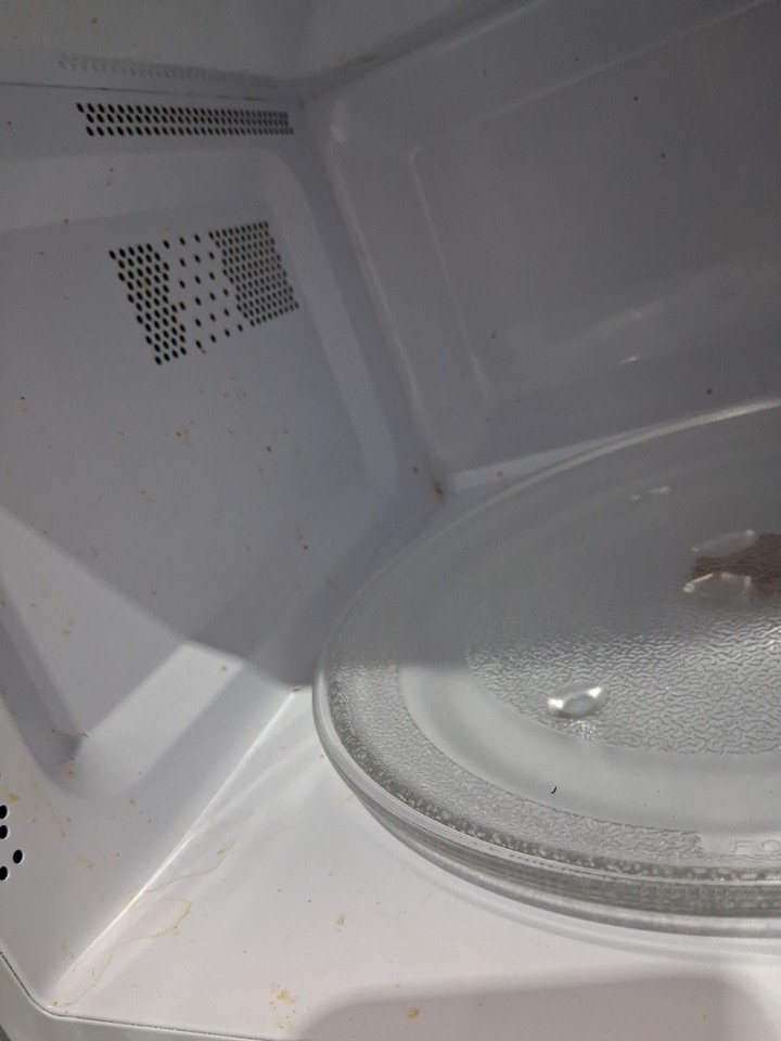 item is missing the plastic ring that sits under the plate and the inside of the item is dirty and there is a dent on the top near the back please see photos