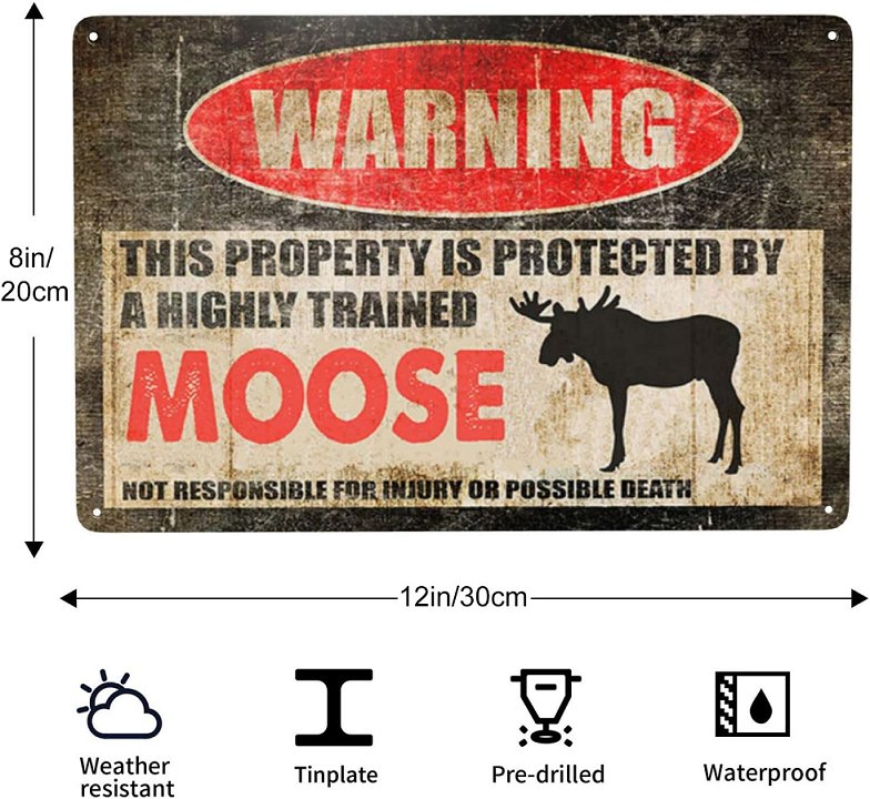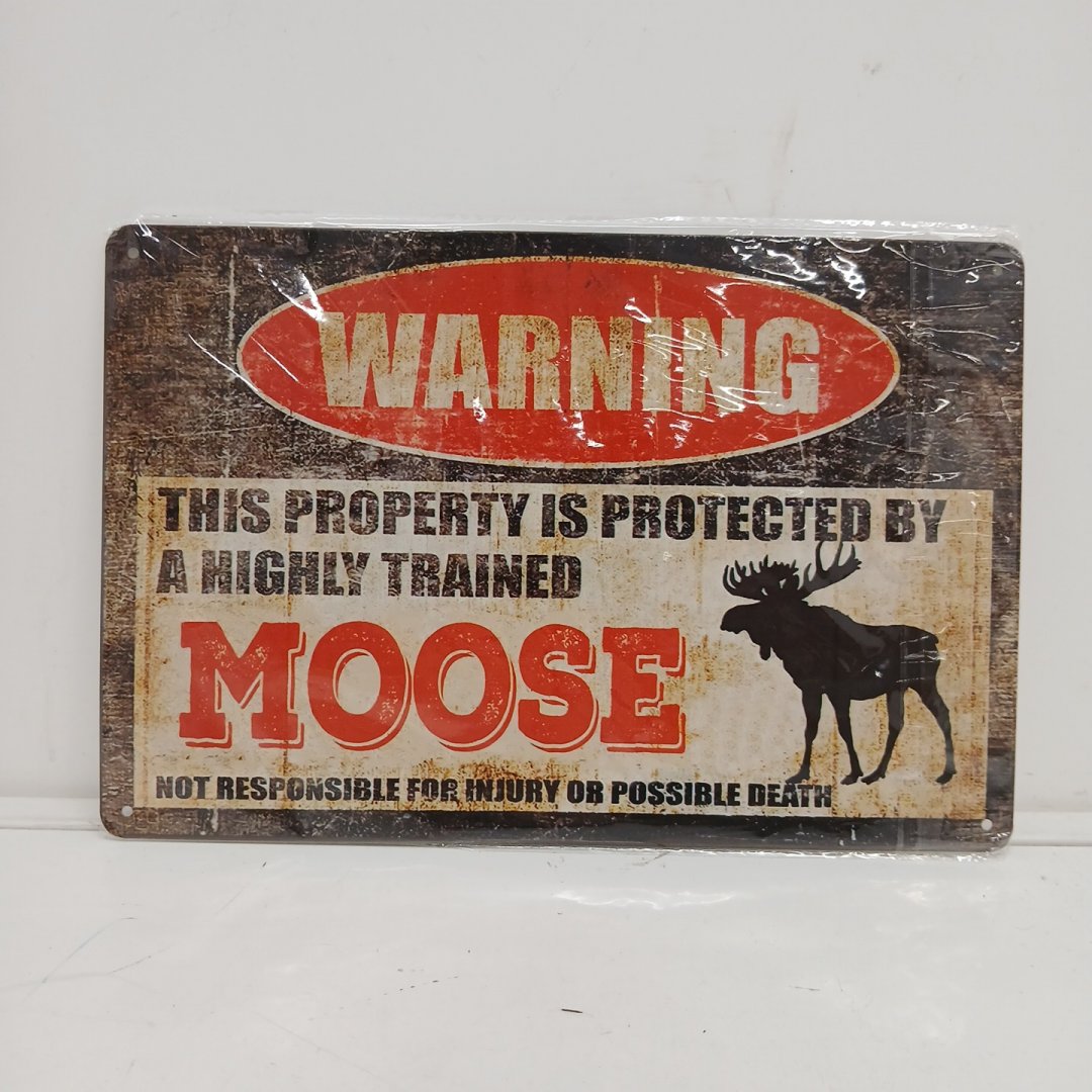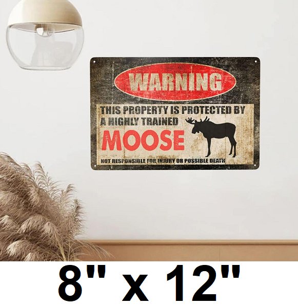 JIOBVTS TIN SIGNS : WARNING DANGEROUS MOOSE VINTAGE TIN METAL BAR SIGN GARAGE DECOR - 8" X 12"