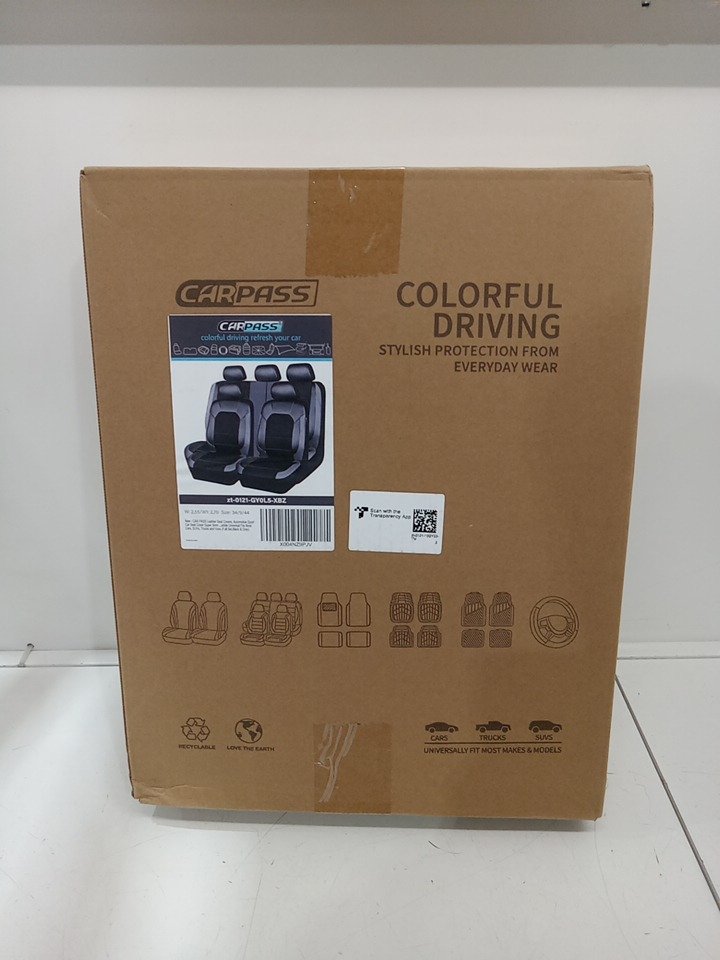 11PC Car Pass universal leather seat covers with 5mm composite sponge airbag compatible - black/grey (model: zt-0121-gy0l5-xbz)
