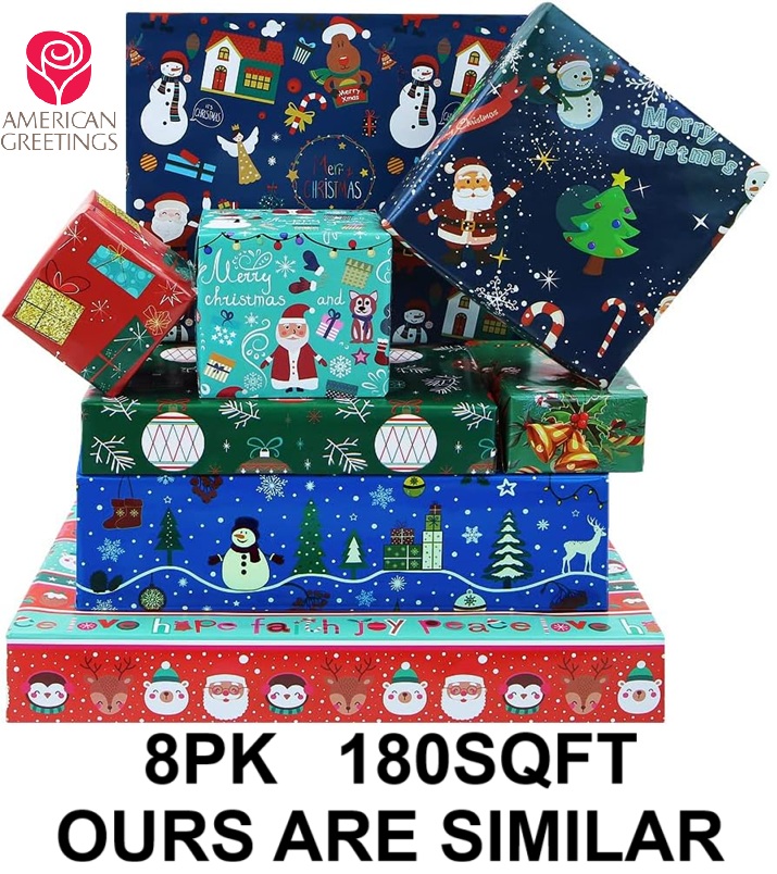 8PK American Greetings Christmas Holiday Wrapping Paper - 180SQFT Total - 22.5SQFT Each - Multicolour (Model: W24-51726/W24-51725)