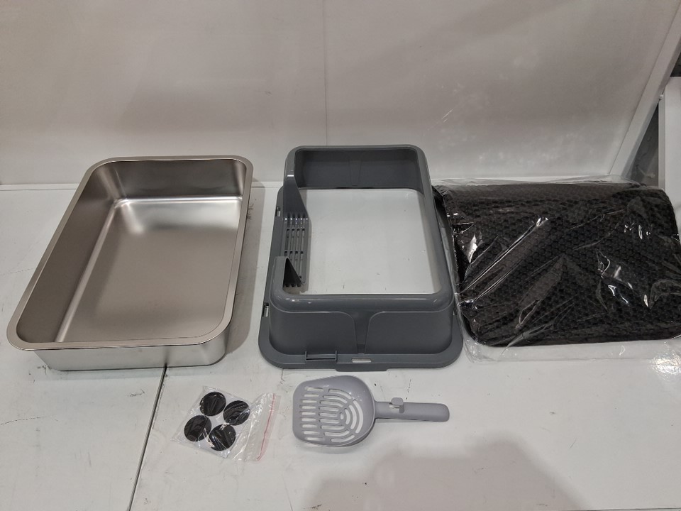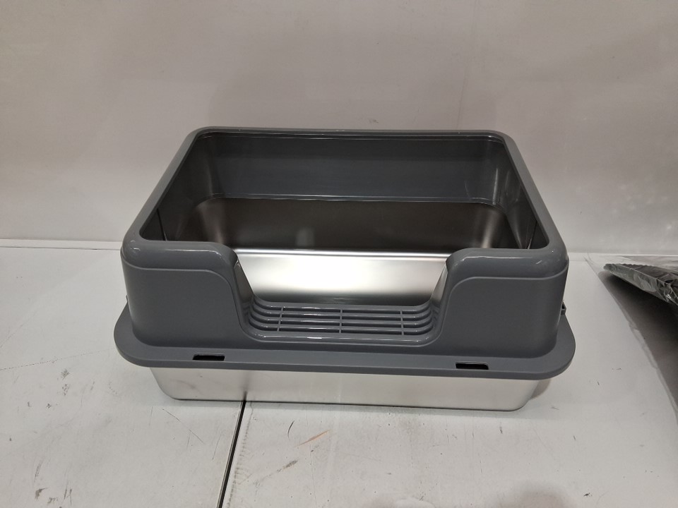 Stainless Steel Cat Litter Box with Lid and High Sided Metal Anti Leakage Litter Pan - grey/silver