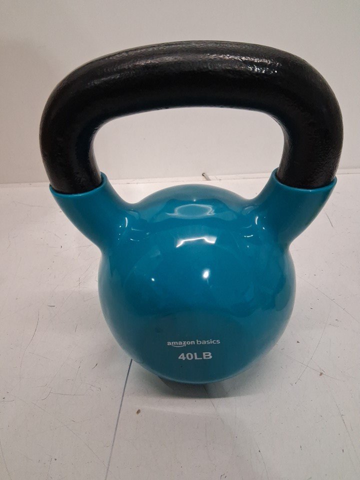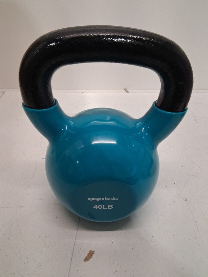 AMAZONBASICS VINYL COATED KETTLEBELL WEIGHT - 40lbs - TEAL BLUE