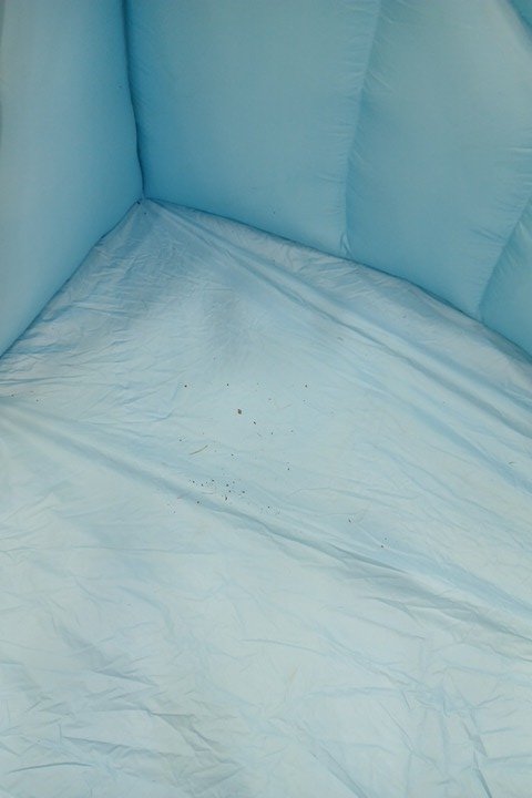 Dirt inside and on inflatable itself, as well water inside the tubing Missing accessories and pump