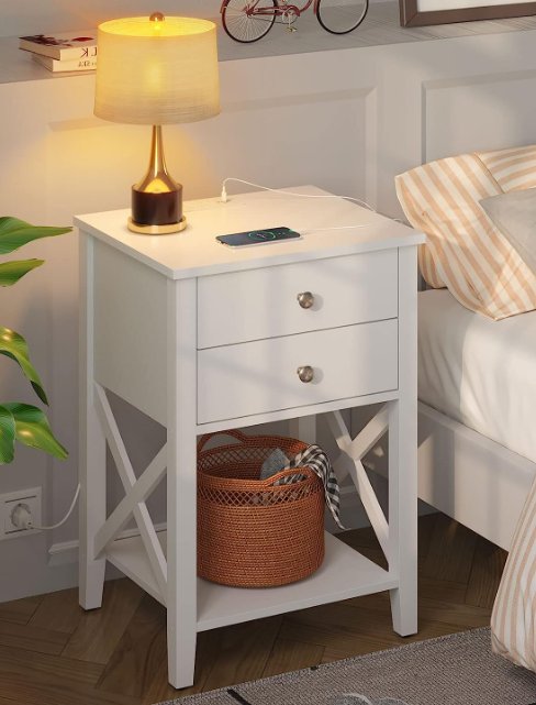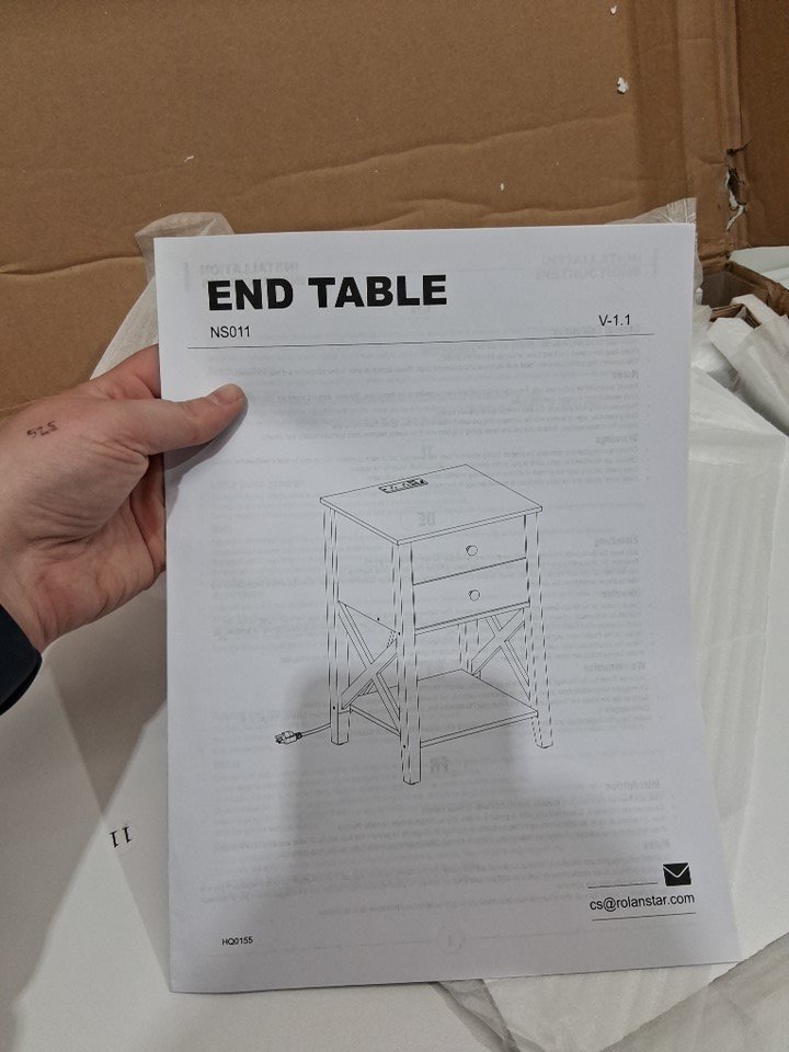 ROLANSTAR 2-DRAWER ACCENT END TABLE WITH POWER BAR - WHITE (MODEL: NS011-WE-RR)