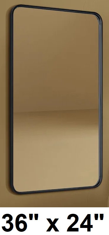 Rectangular Mirror With Rounded Corners - 36" x 24" - Black
