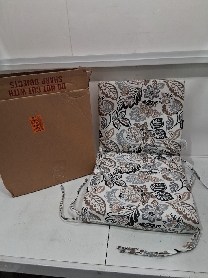 pillow perfect indoor/outdoor dailey pewter rounded corner chair cushion - 40.5" x 21" x 3" - black/beige