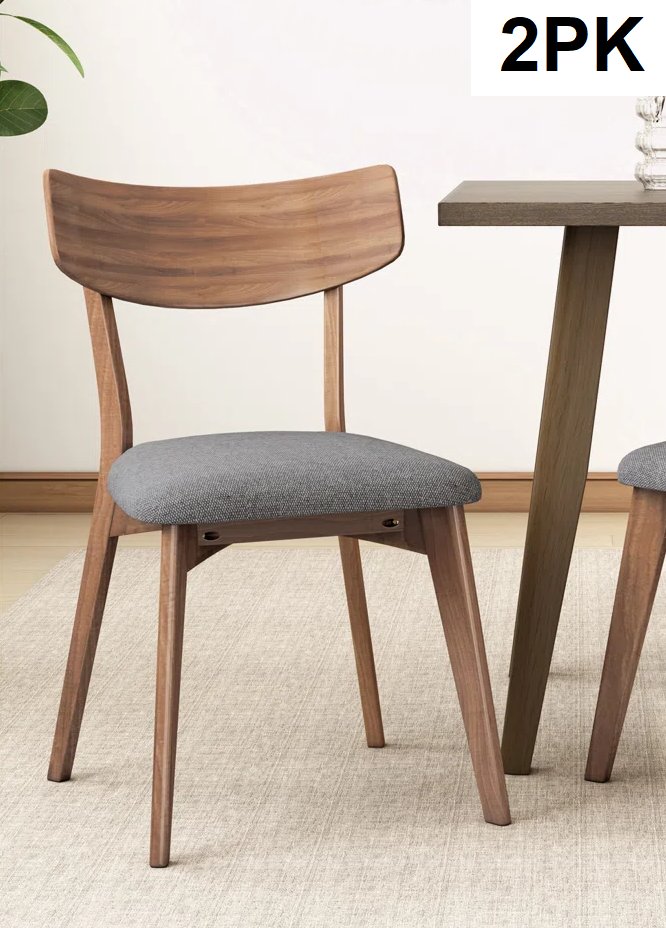 2PK George Oliver Walnut Finished Frame Upholstered Dining Chairs with Solid Rubberwood Frame, Rich Walnut Finish, Upholstered Fabric Seat & Back and Figure-Eight Leg Design - Dark Grey (Model: N768P189387D)