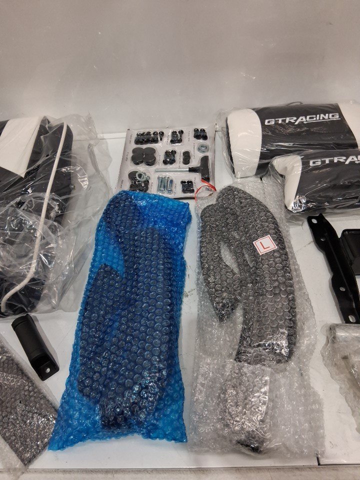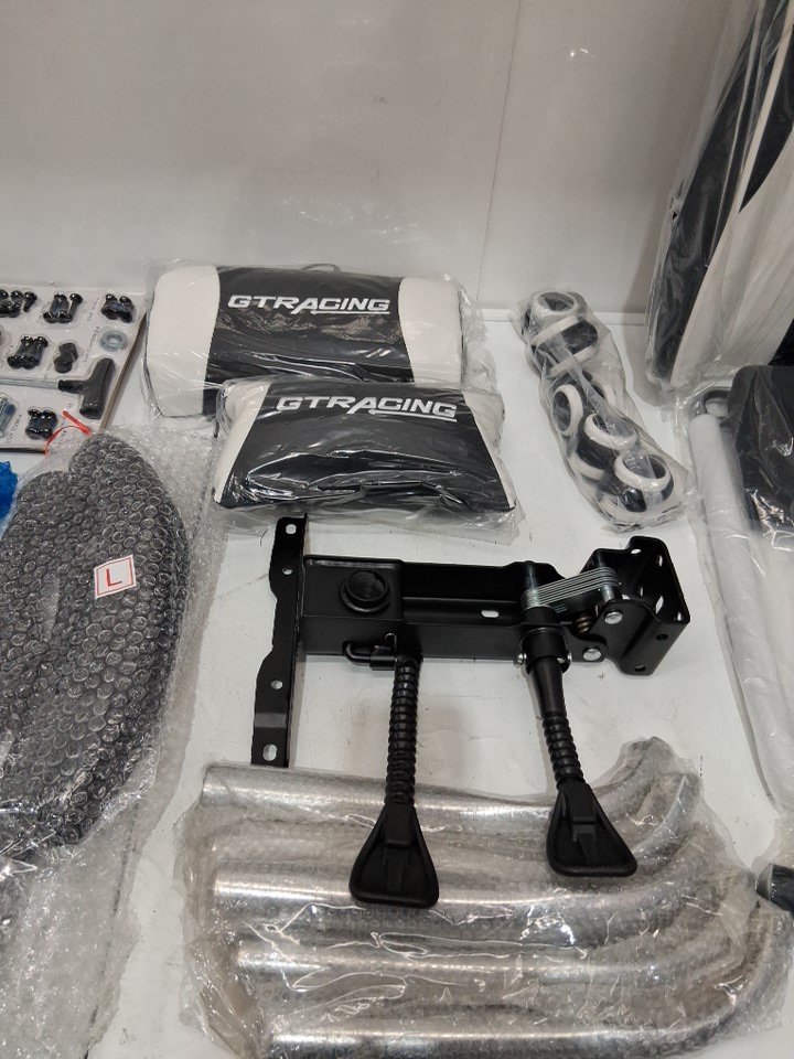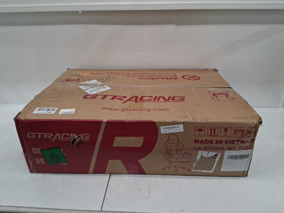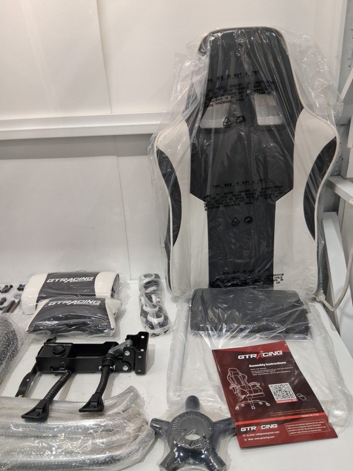 GTRACING ADJUSTABLE GAMING COMPUTER SWIVEL CHAIR WITH FOOTREST AND MASSAGING LUMBAR PILLOW - 250lb max weight - black/white (model: ca-gt800a-wt-620)