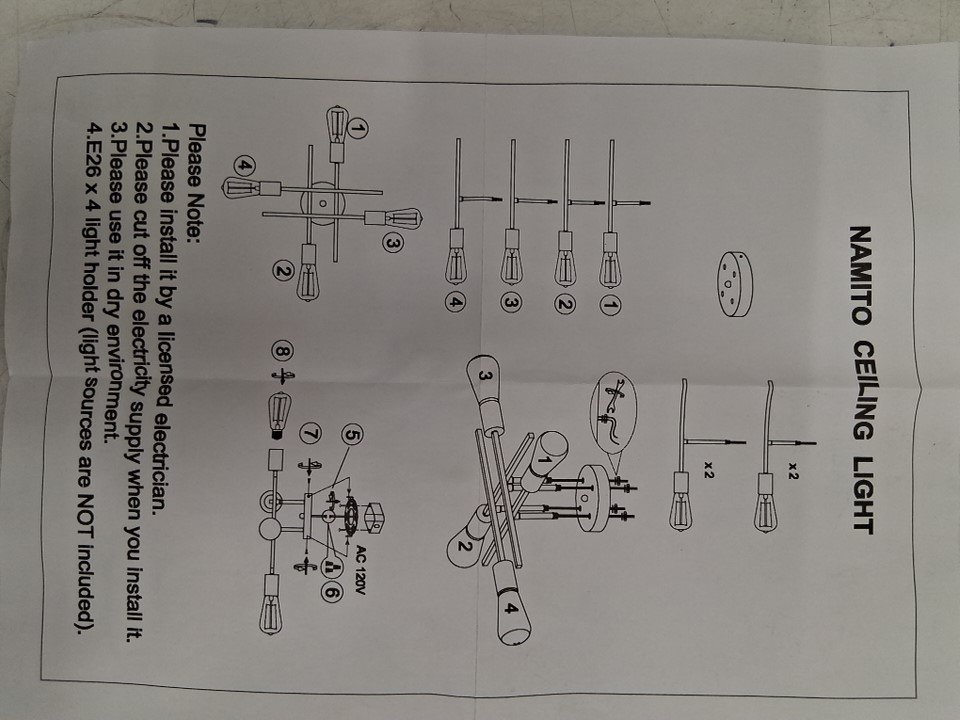 Please note that the item is meant to be hardwired and was not tested at our facility. There are no bulbs included