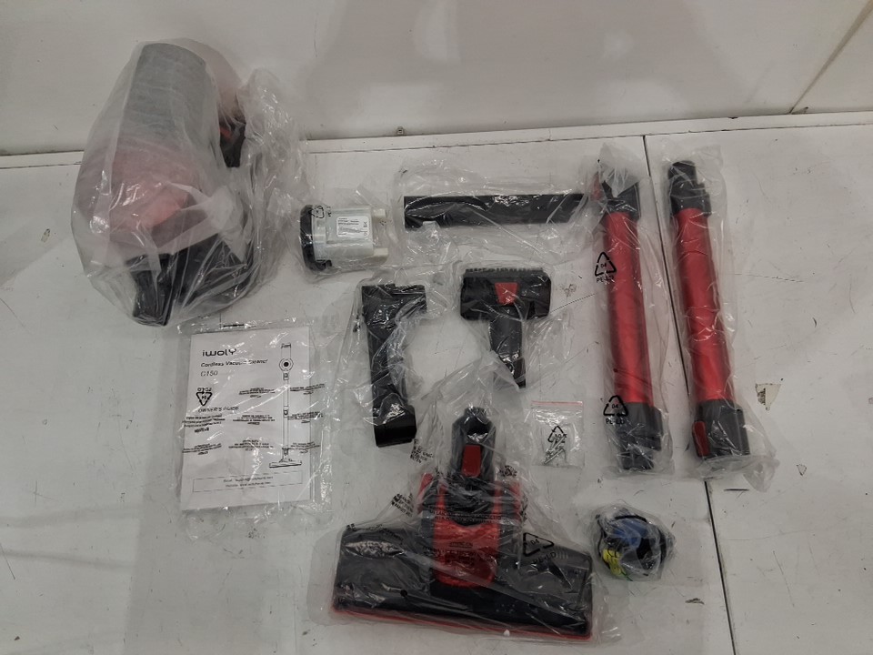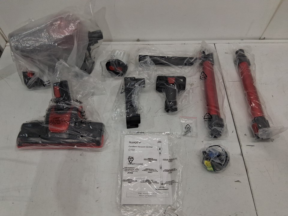 IWOLY CORDLESS 2-IN-1 VACUUM CLEANER KIT WITH TOOLS/ACCESSORIES - 2200MAH BATTERY - 18KPA - RED/BLACK (MODEL: C150)