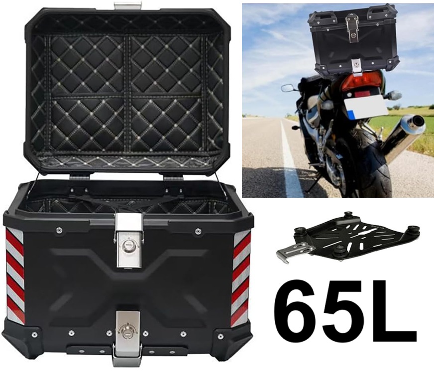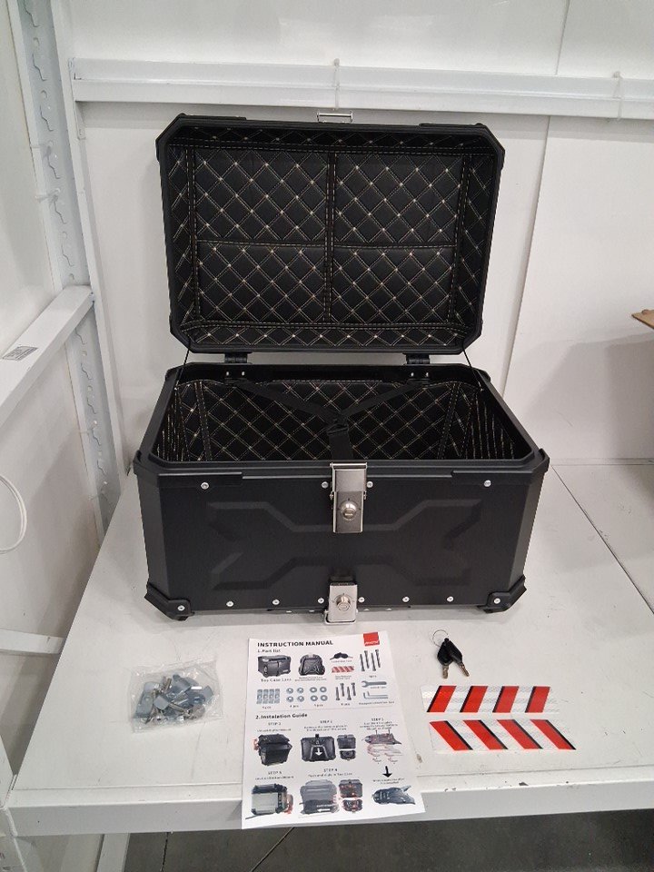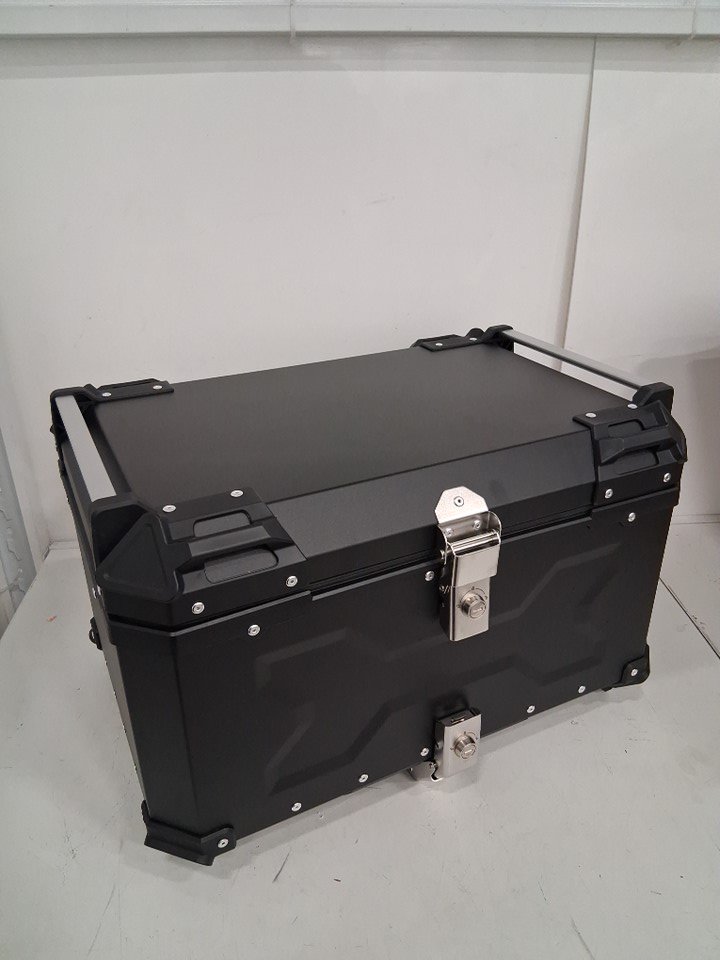 TT-YEL Aluminum Motorcycle Tail Top Box with Security Lock - 65L - black/silver (model: 65L/ABLACK65L-66081124)