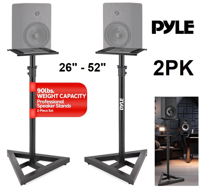 2PK PYLE Speaker Stand - Telescoping Height Adjustable 26''- 52" - (model: ‎PSTND35)