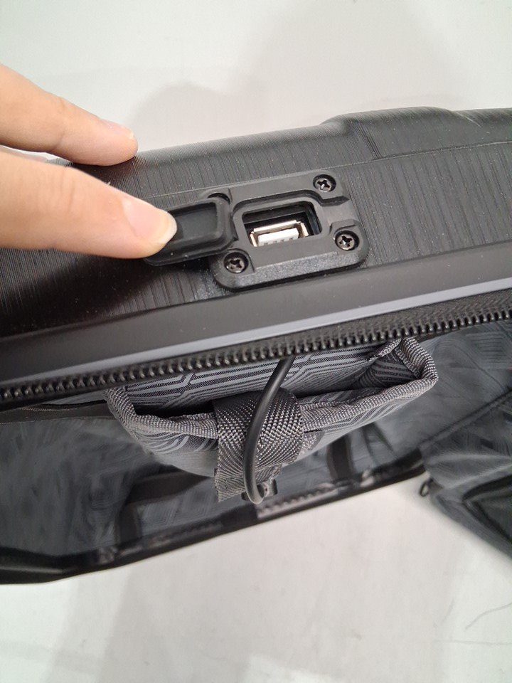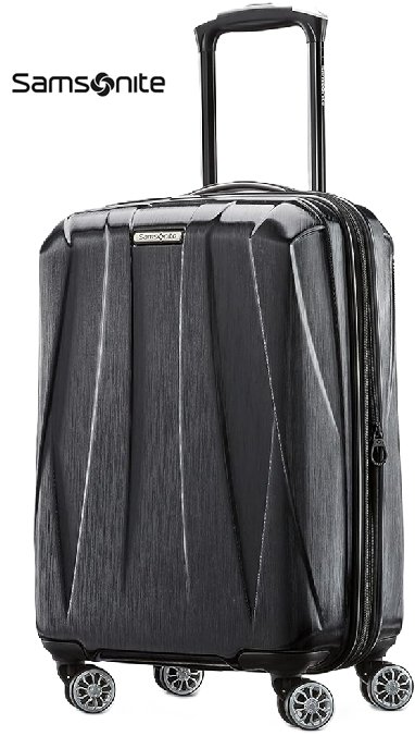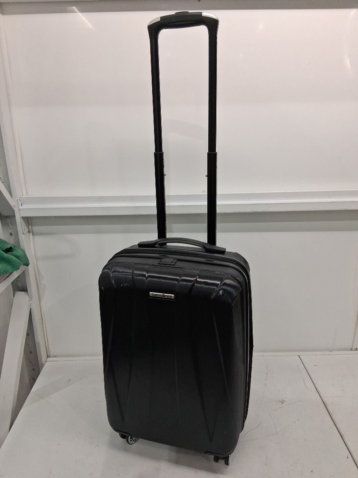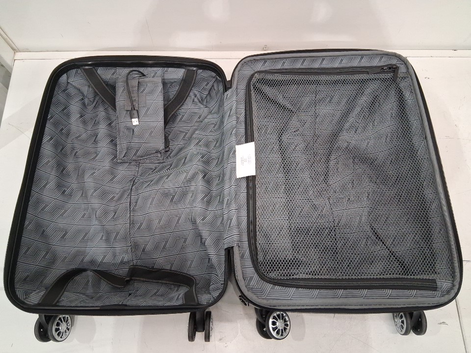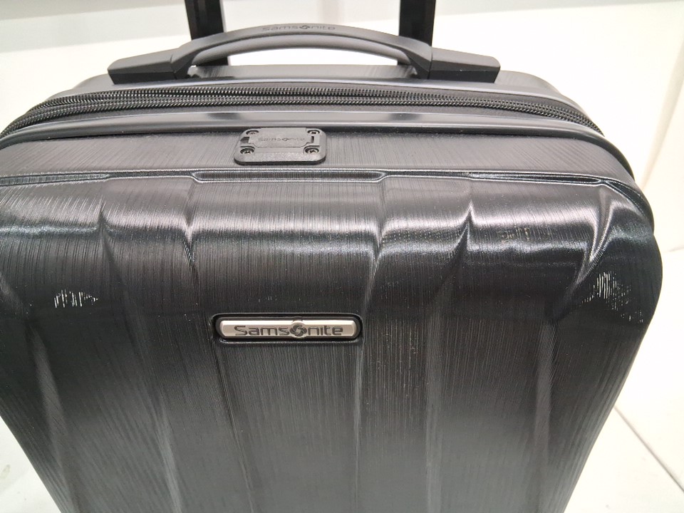 Blue and white scuff marks on exterior of luggage indicate minor short-term use. (See photos)