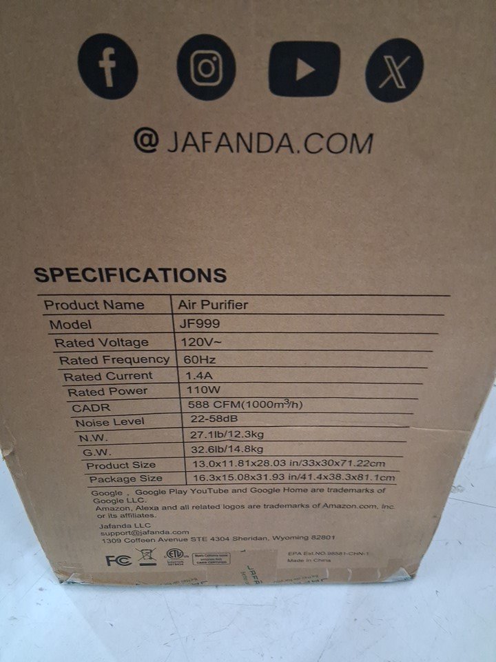 Jafanda H13 True HEPA Large Air Purifier for Whole Home and Commercial Spaces – 3-Stage Filtration, Removes 99.97% of PARTICULATES - UP TO 4575SQ.FT. (MODEL: JF999)